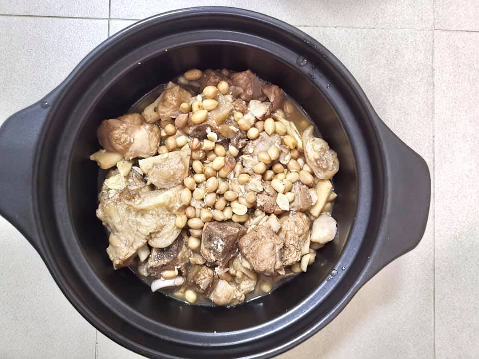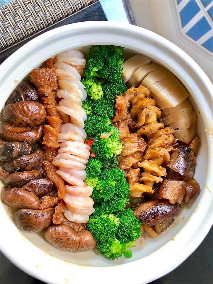 I had earlier boiled the fish maw and mushroom for 1hr. now add them to the 盆菜 pencai. broth and cook about 30mins.