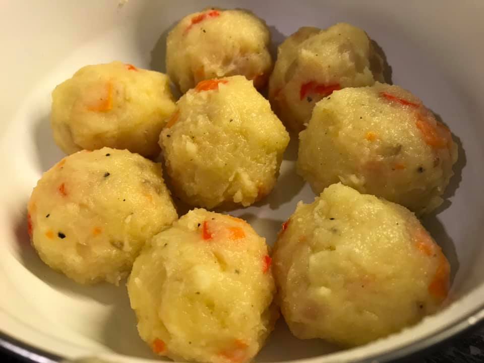 for a tasty, flavourful mash, 1 boiled a medium potato, remove skin, cut small pieces, and add to blender with 20g butter, 1-2 tbsp extra virgin olive oil, sea salt and ground black pepper. mash should be a slight viscous paste. add enough olive oil so blending is smooth.may need some shaking….