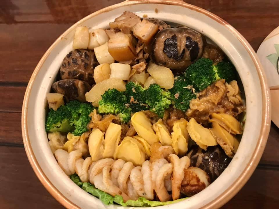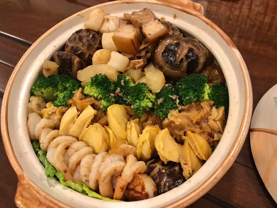 I add/layer few leaves of Chinese cabbage to the bottom of the claypot dish.