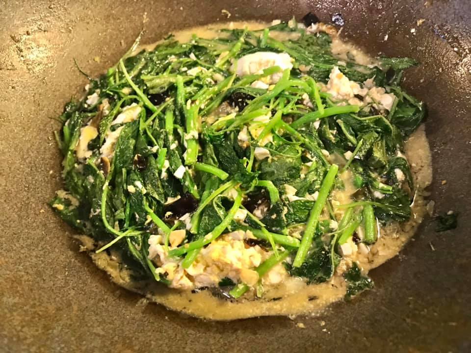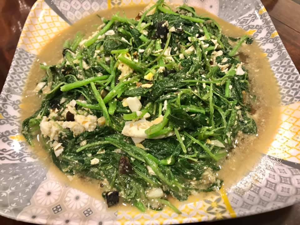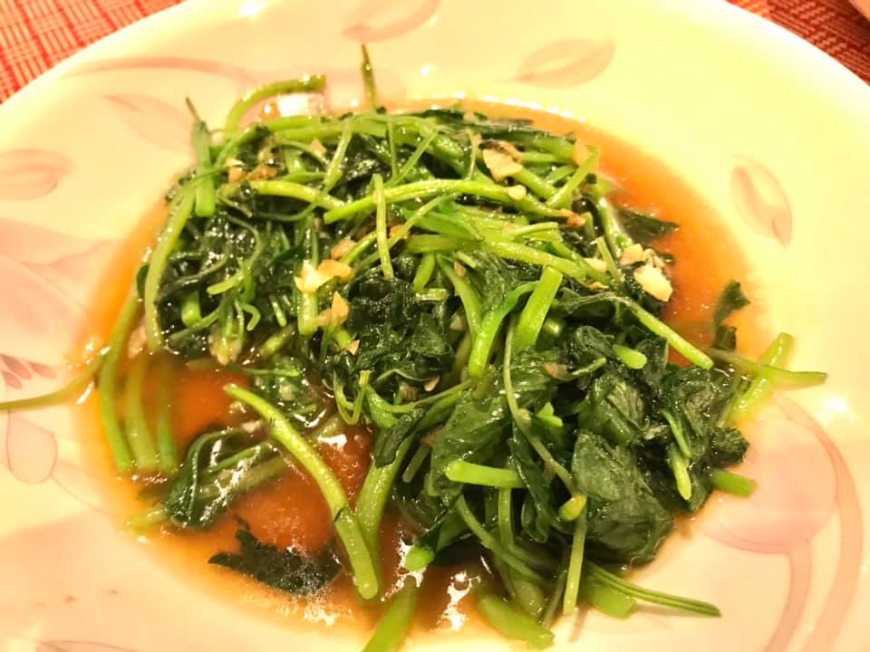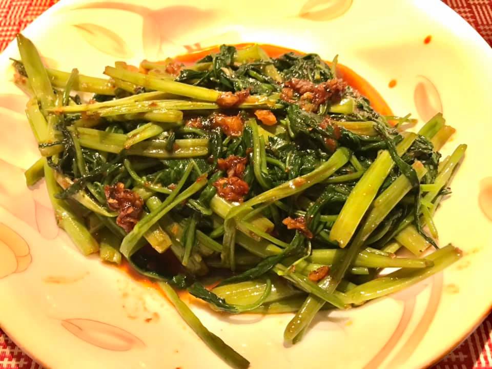 I cooked 2 vegetables – baby spinach & sambal kang kong…