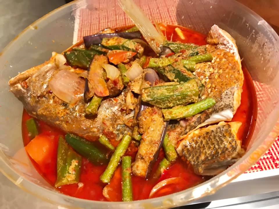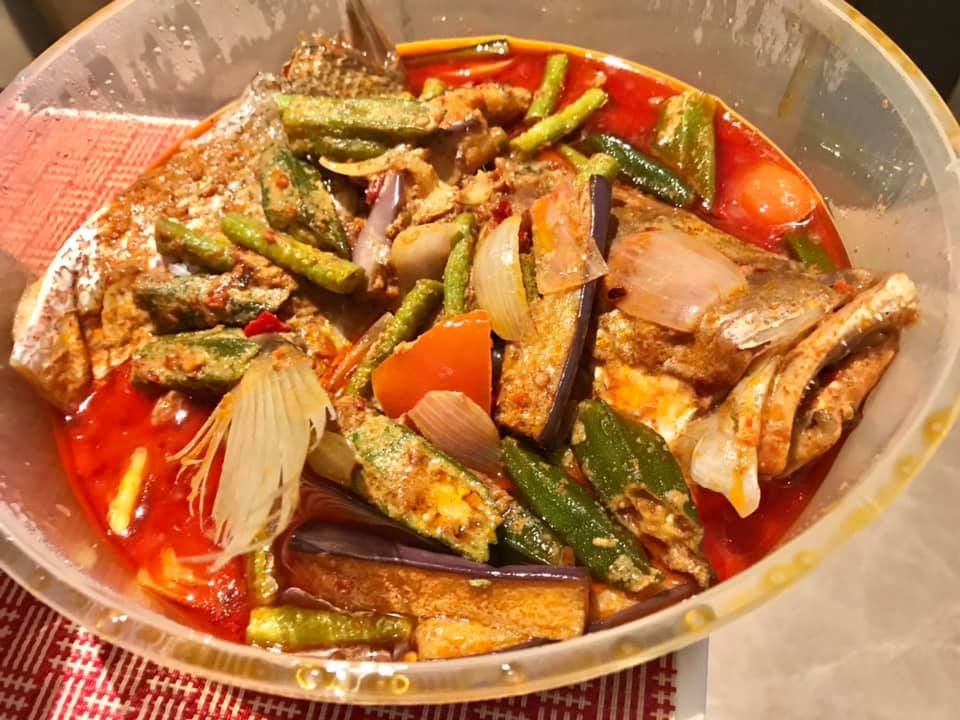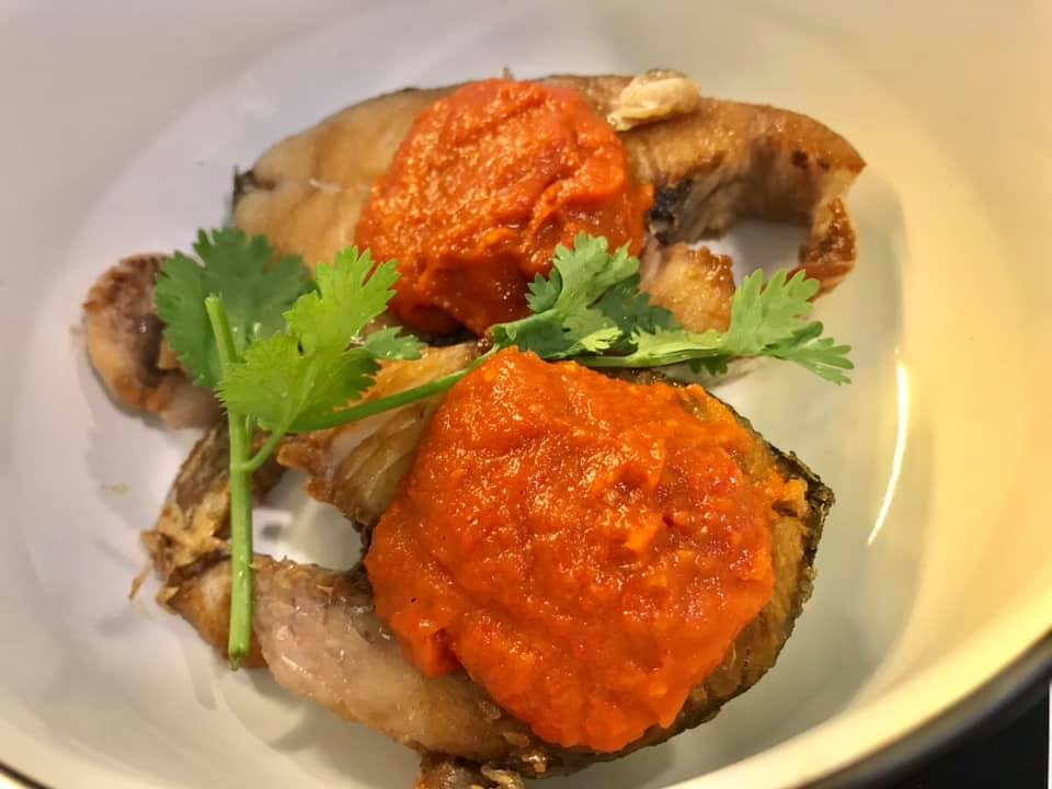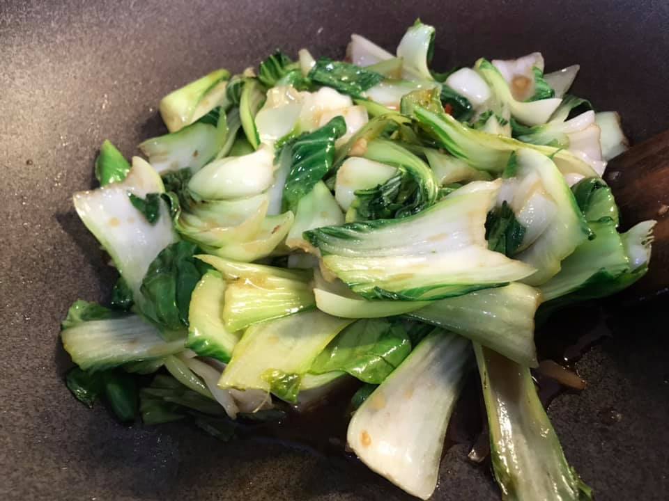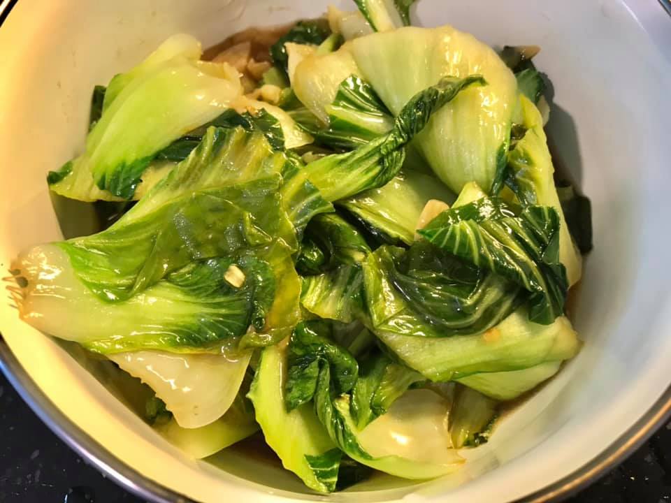 I cooked 2 vegetables – baby spinach & sambal kang kong…