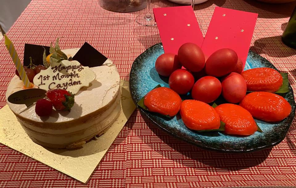 celebrating grandson 1st month family dinner this evening on 4.3.2021.^^