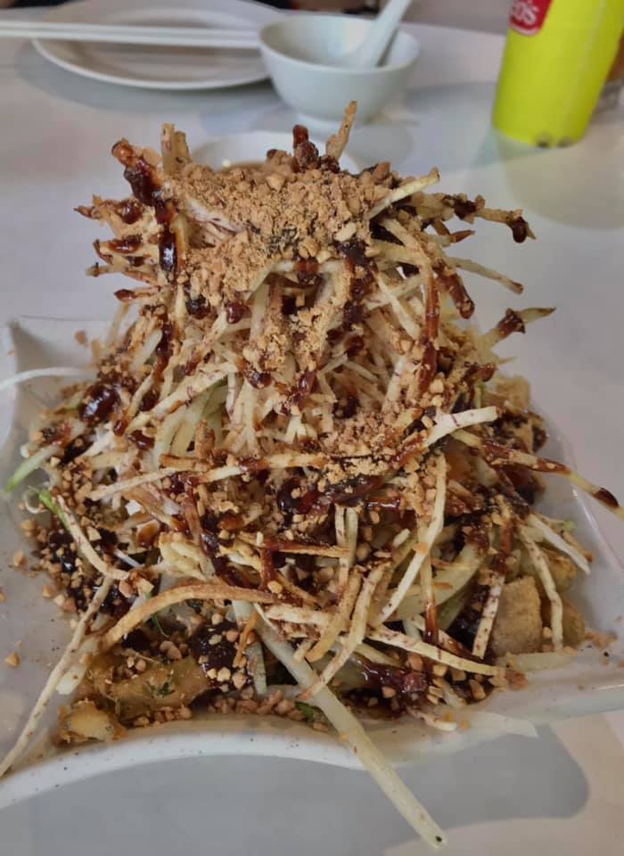 fried rice I fried lots of minced garlic, then added 150g minced pork and 1 tbsp oyster sauce, cooked minced pork, then added 1 cup cooked rice and fried high heat. remove fried rice, fried 3 eggs high heat till formed, then added back friend rice, fried high heat, off fire, add crispy haebeehiam chilli and mixed. taste and add fish sauce if need.