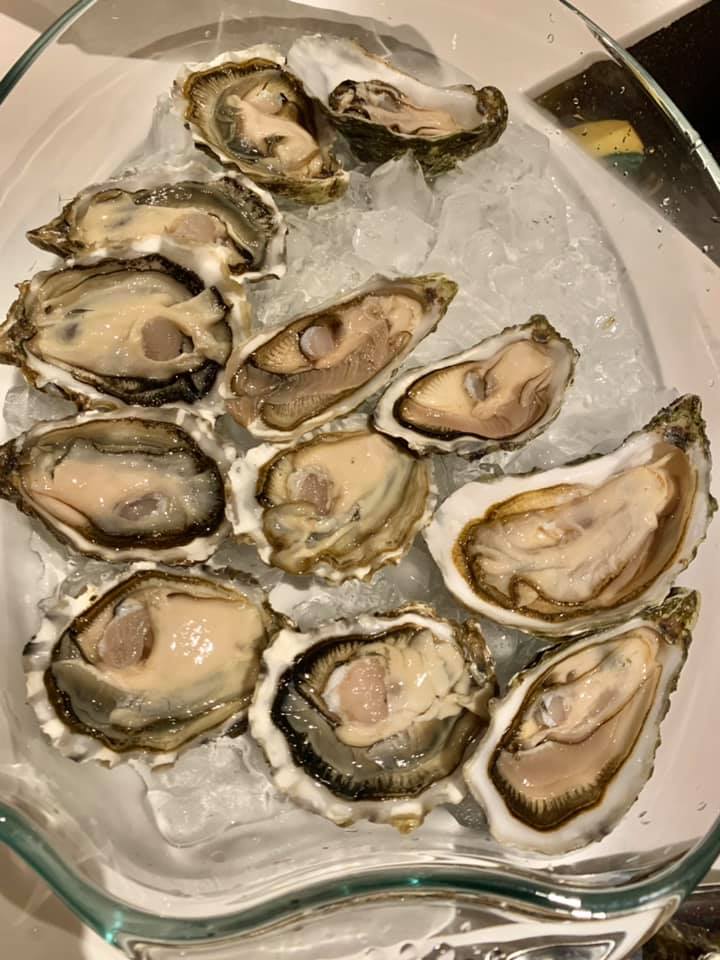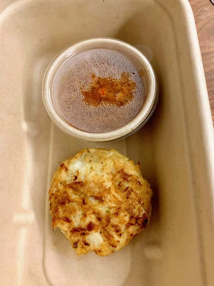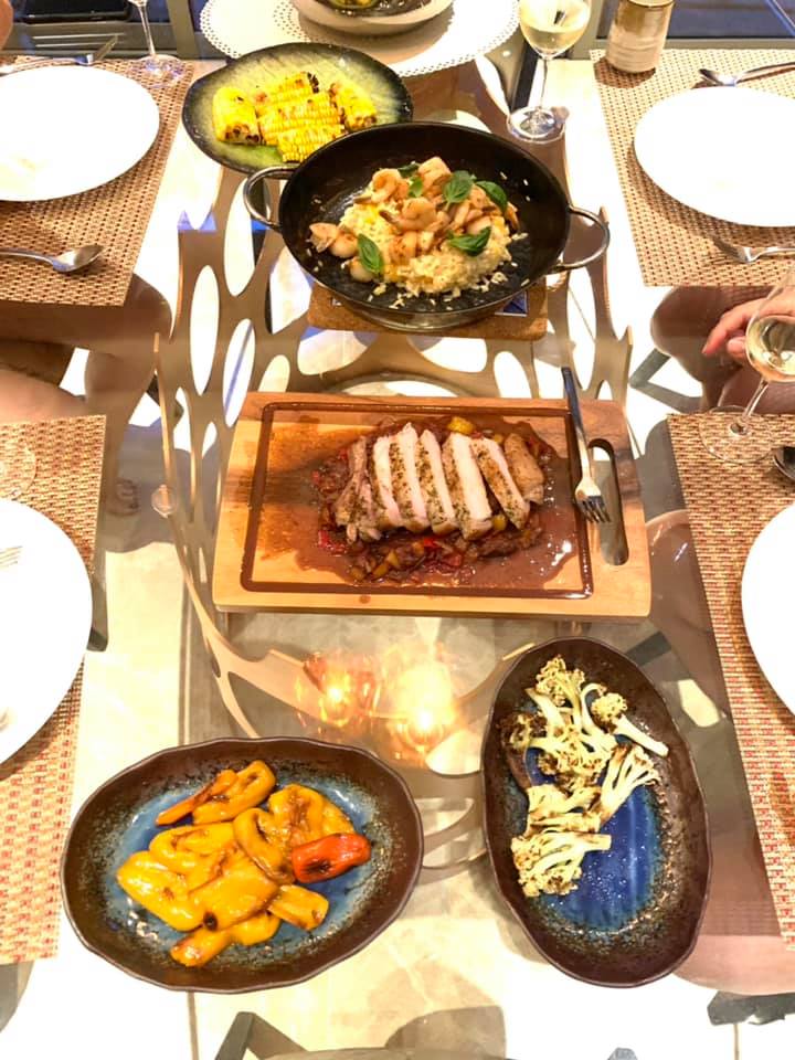 aunty bes made grilled peppers, long stem cauliflower & sweet corn. also calamari & deepfried lotus roots both very good