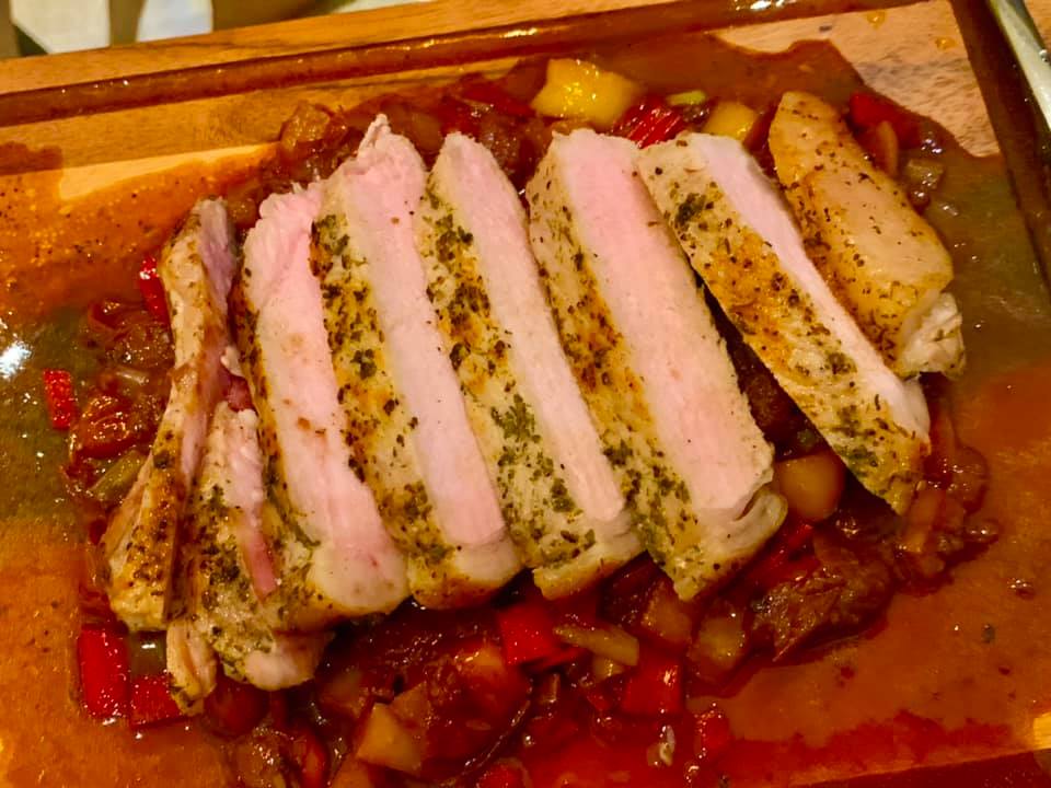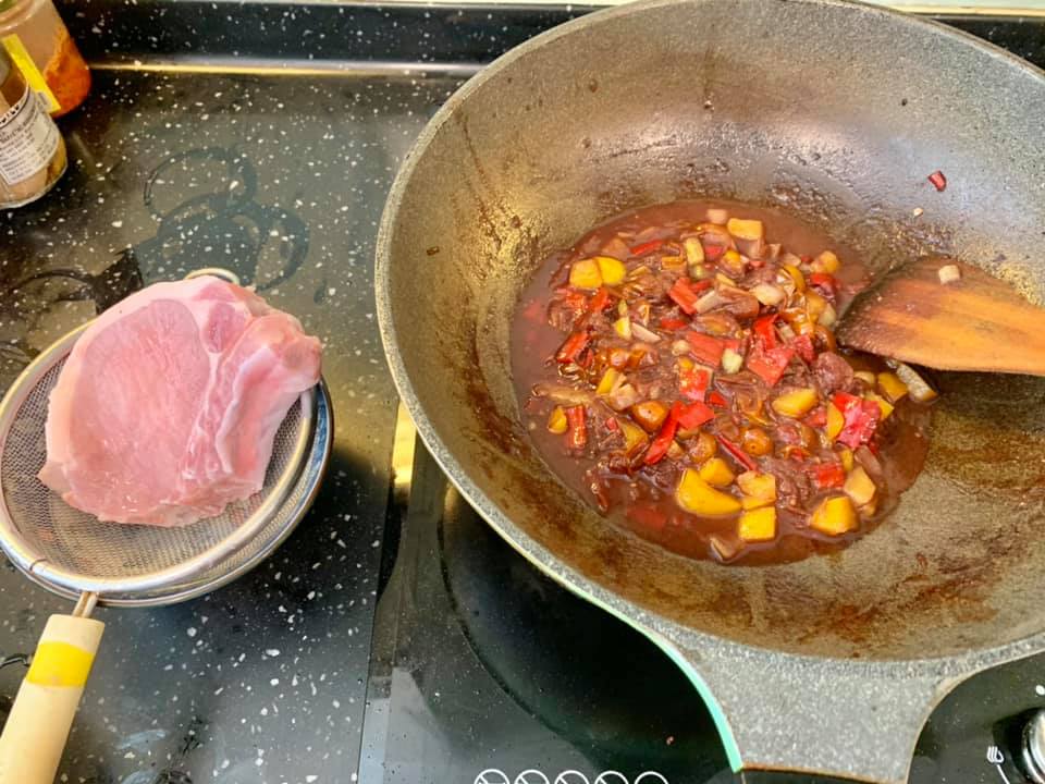 - sous vide reverse sear pork chop with tomatoes red wine sauce