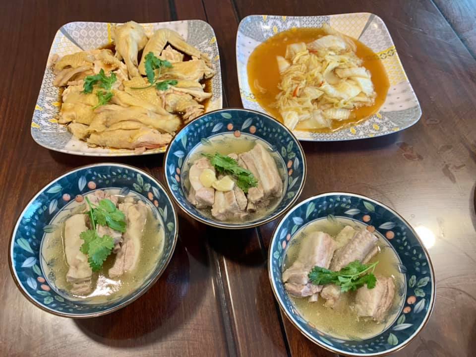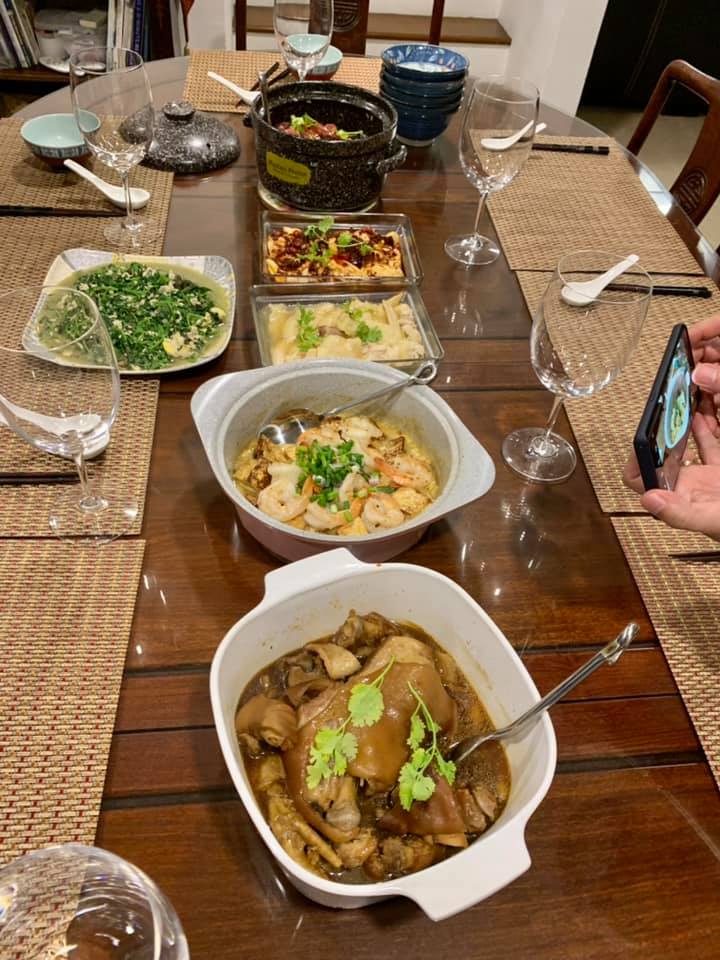 dishes are all good this evening..they liked the claypot rice, hk steamed soon hock and spinach, V and Lisa don’t take mala, so most the drunken chicken…师父and daughter liked both saliva chicken 口水鸡drunken chicken 醉鸡, and I think 师父 liked the ter kar – braised pork trotters 卤元蹄 best. lol!
