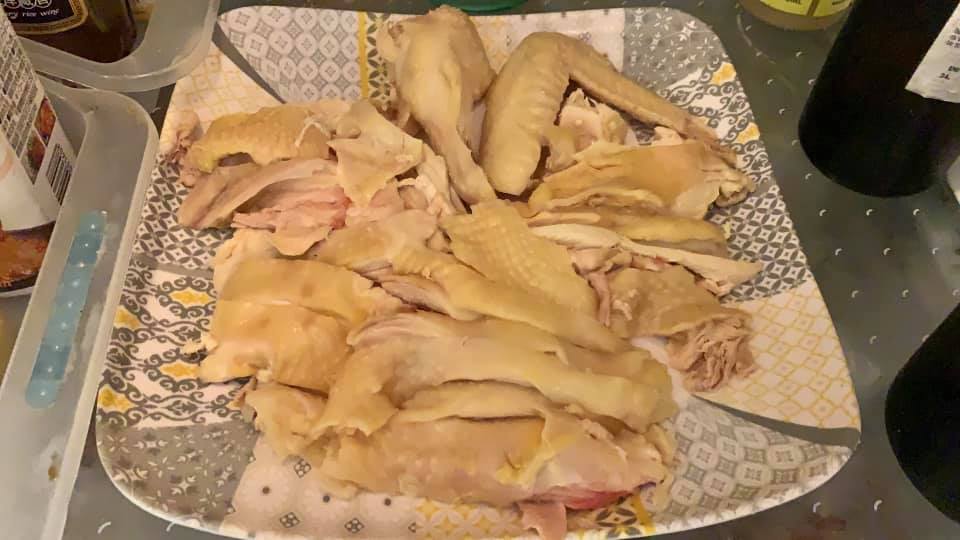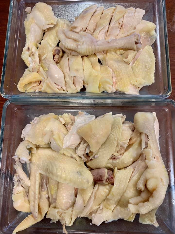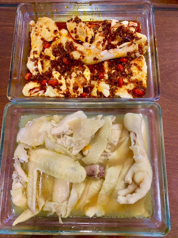 1/2 kampung chicken 白斩鸡 perfect too. tender, moist sweet, and I served with ginger sauce, homemade chilli and dark sauce.