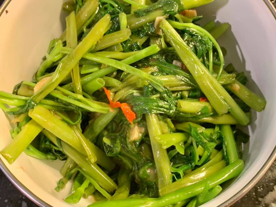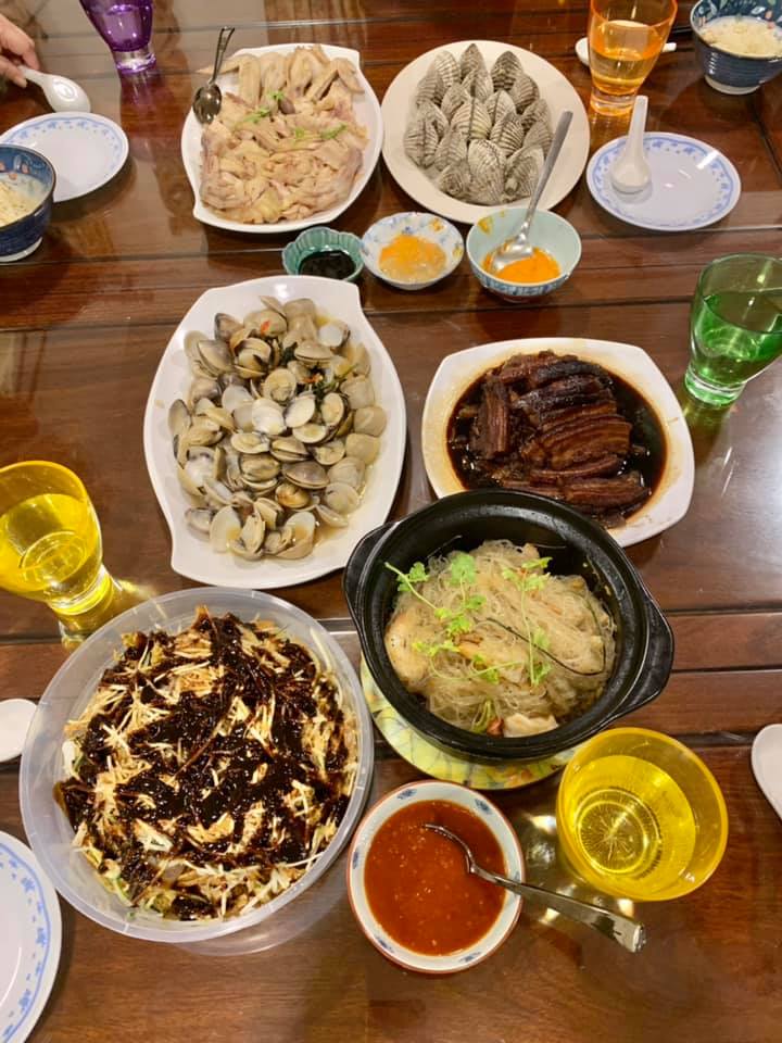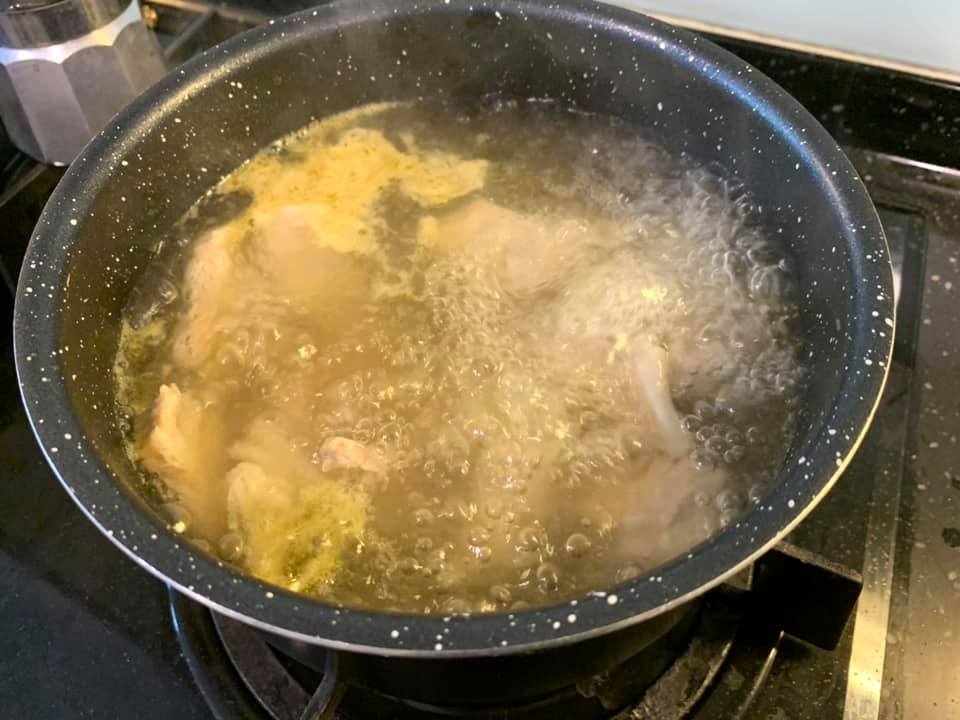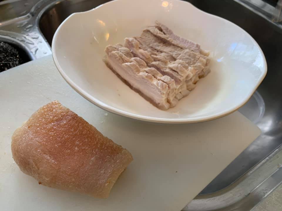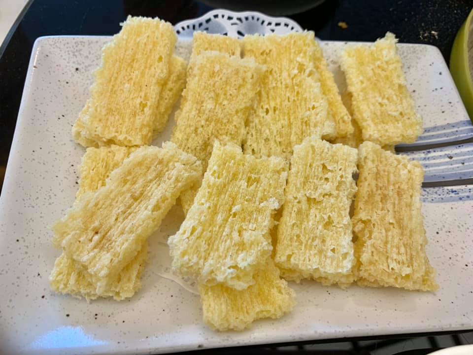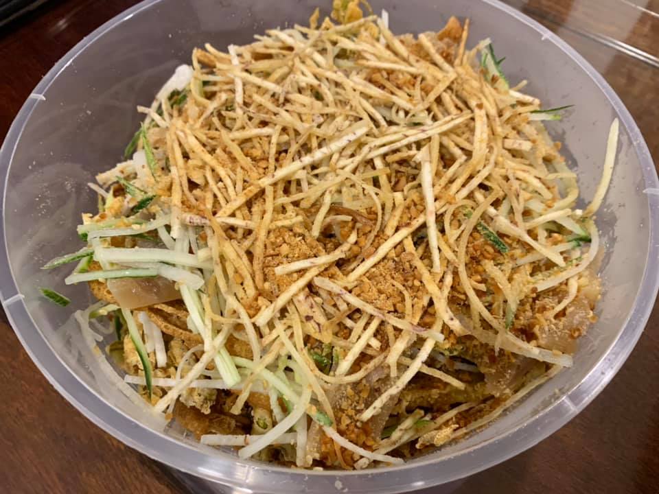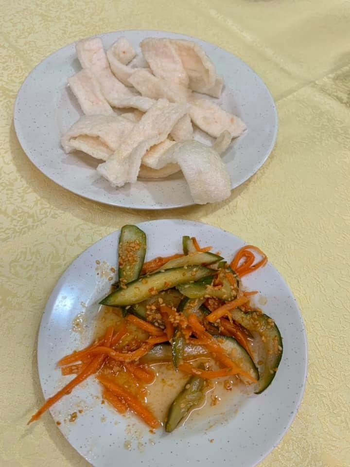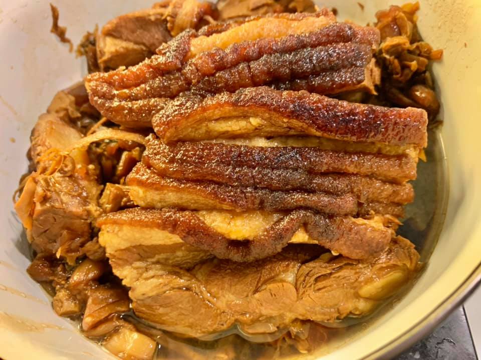 fried fish head and bones with lots of browned crisp julienned ginger, 1 chilli padi, 5 cloves garlic cut into 3 each, and 1/2 sliced red onions, added salt and boiled for 3 hrs, reduced to a very tasty whitish soup, added 3 tbsp huadiao wine, boiled another 1-2hrs with cabbage and added 1 sour plum mashed…very very sweet tasty soup, and added sliced fish poached and served.