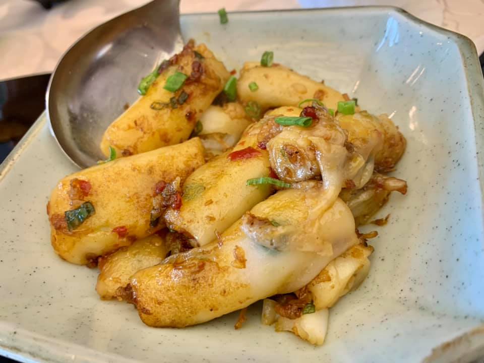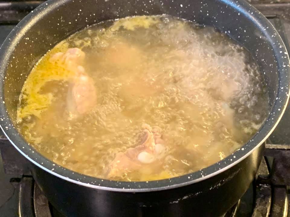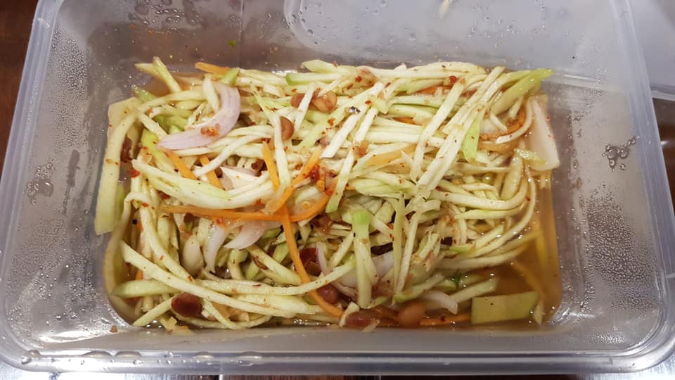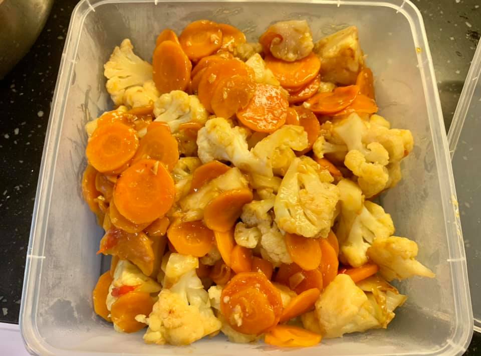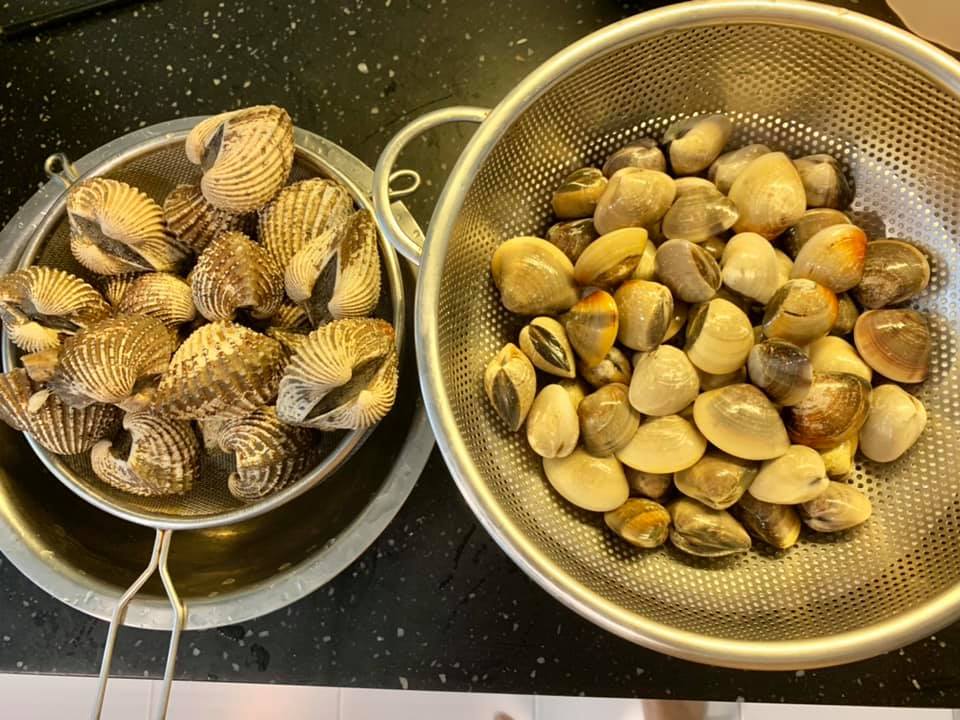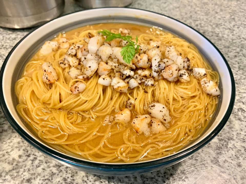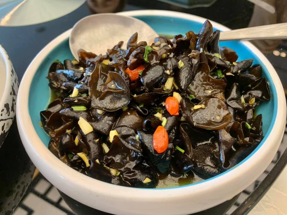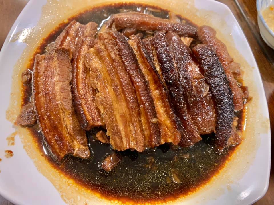 fried fish head and bones with lots of browned crisp julienned ginger, 1 chilli padi, 5 cloves garlic cut into 3 each, and 1/2 sliced red onions, added salt and boiled for 3 hrs, reduced to a very tasty whitish soup, added 3 tbsp huadiao wine, boiled another 1-2hrs with cabbage and added 1 sour plum mashed…very very sweet tasty soup, and added sliced fish poached and served.