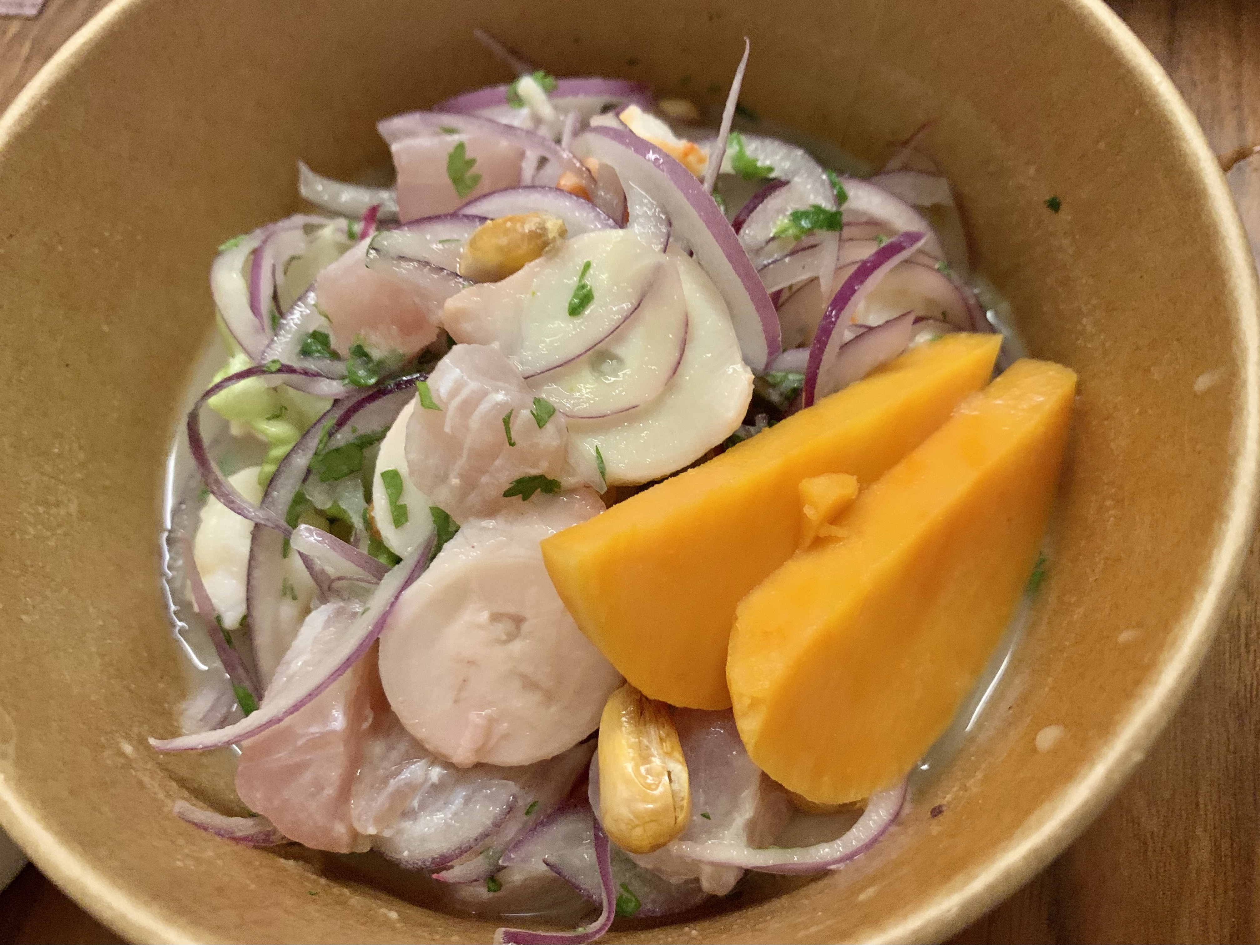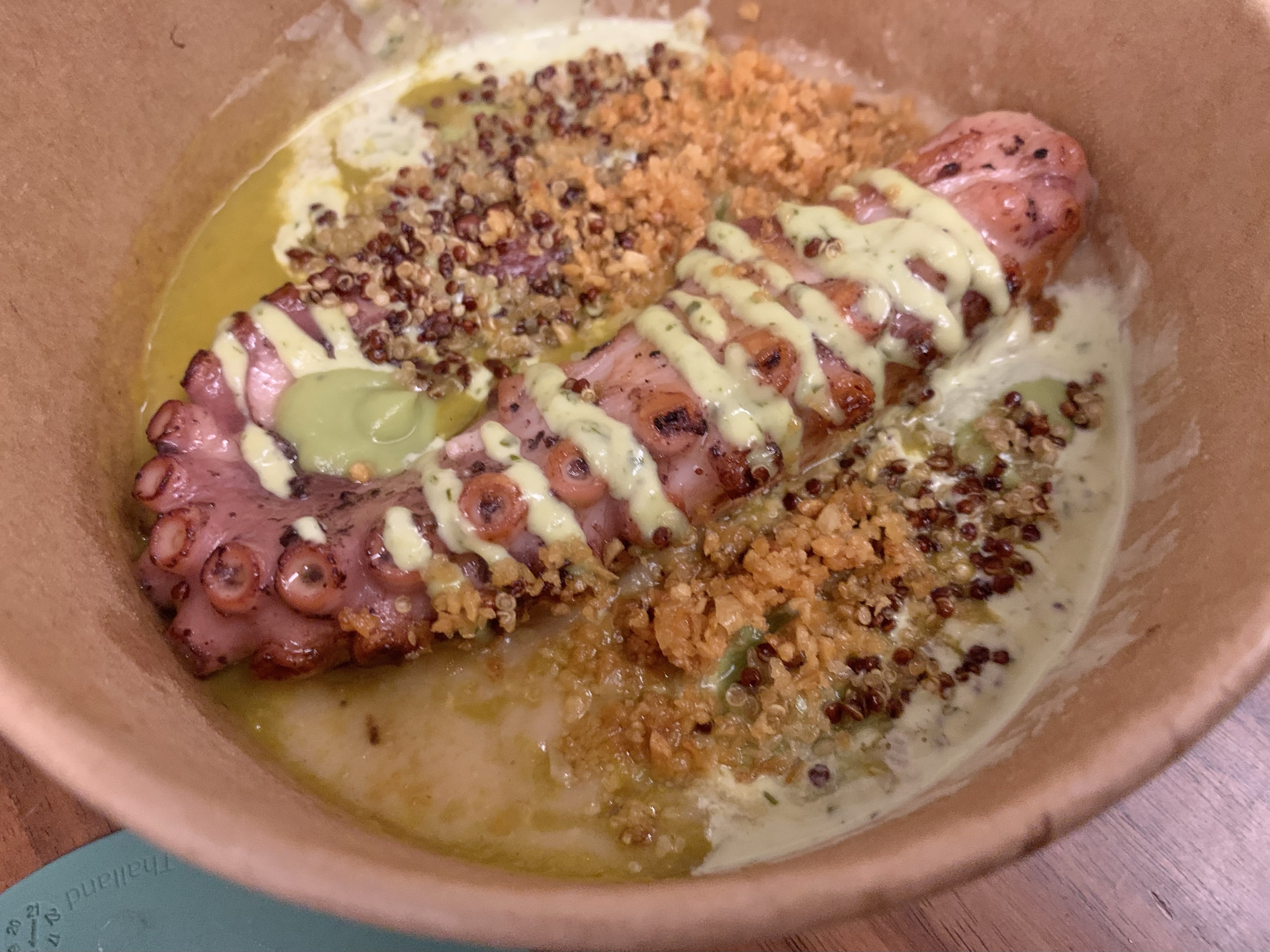 tapao dinner from canchita, Peruvian restaurant at dempseyS$32 octopus was best!ceviche very good fish soup was good toochicken was very good very tenderfried rice very good I liked the light coconut dessertI liked the light coconut dessert
