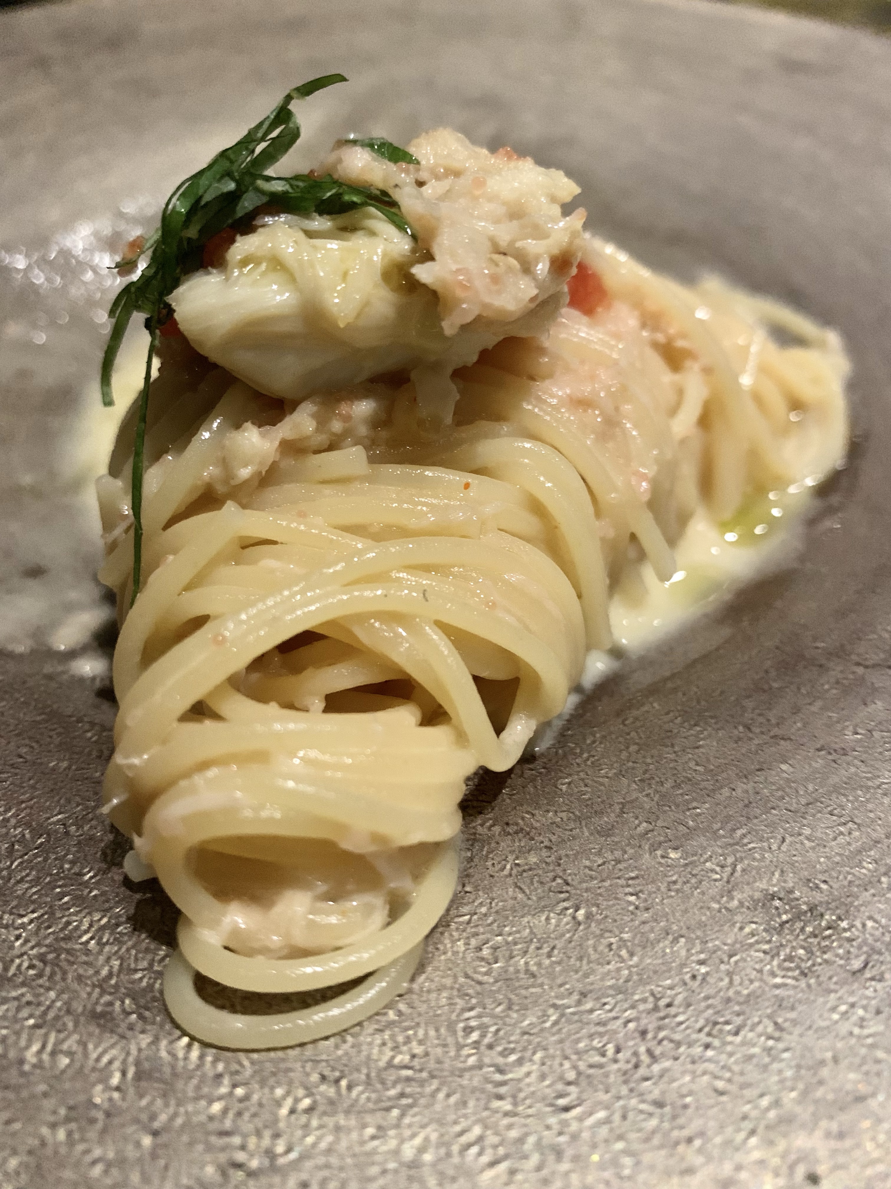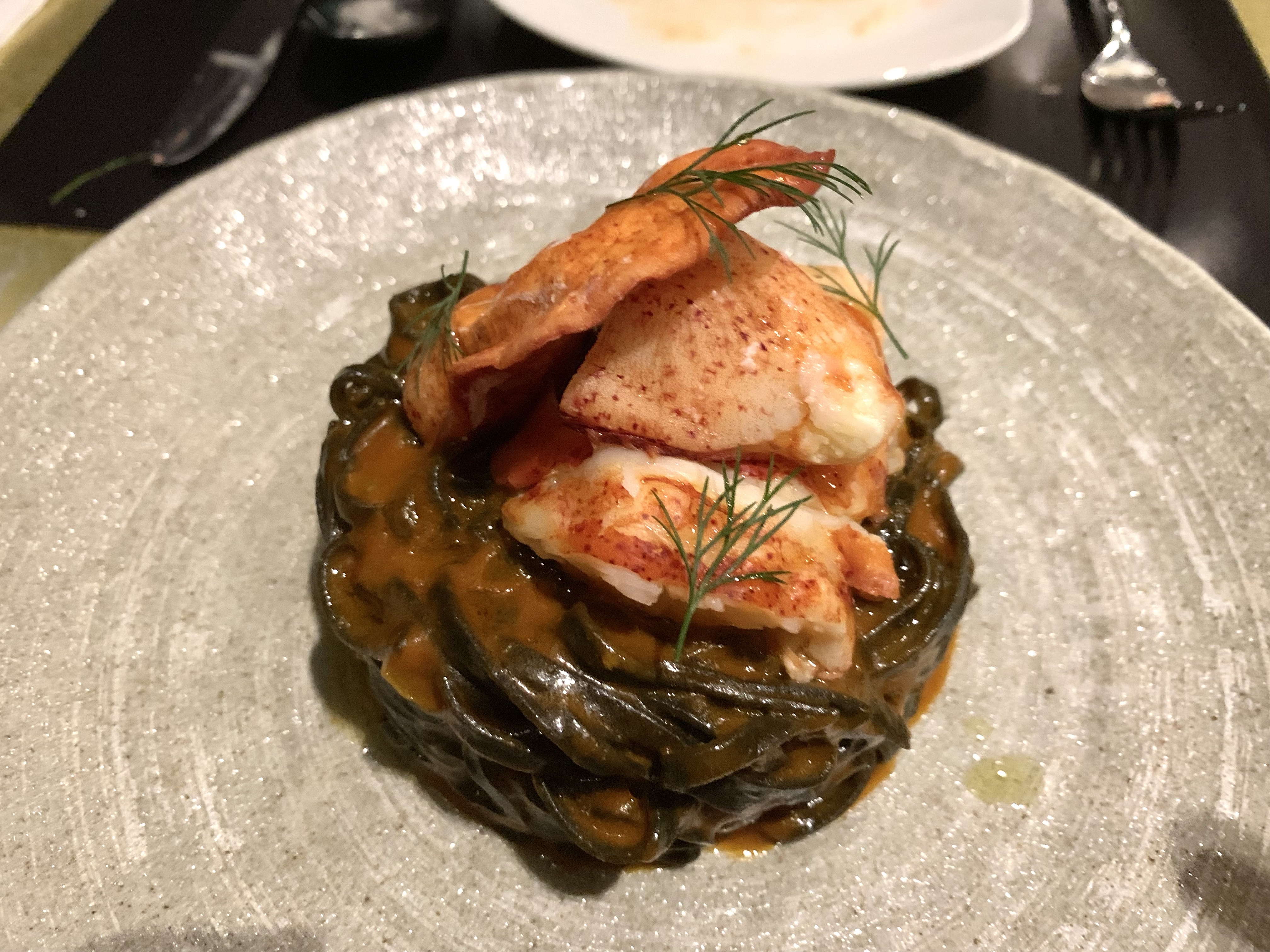 plus pork collar terrine (experiment)grilled scallopschopped cauliflower and grilled scallopschopped cauliflower inverse on sliced grilled scallopsgrilled scallops on chopped cauliflower on cauliflower gazpachogrilled scallops on chopped cauliflower on cauliflower gazpachogrilled scallop on truffle angel hairsous vide Australian pork chop in red wine tomatoes ratatouille seafood squidink pasta