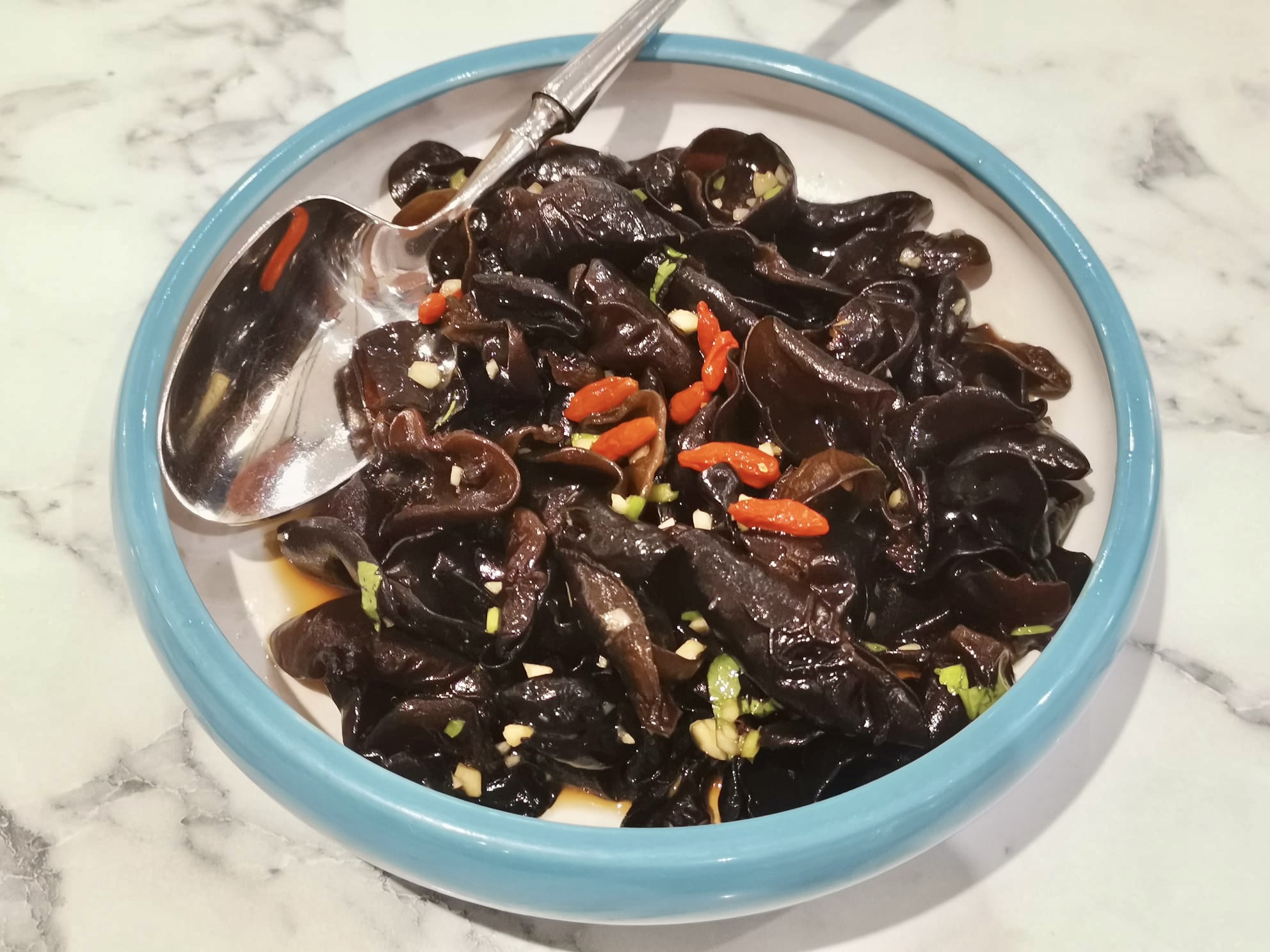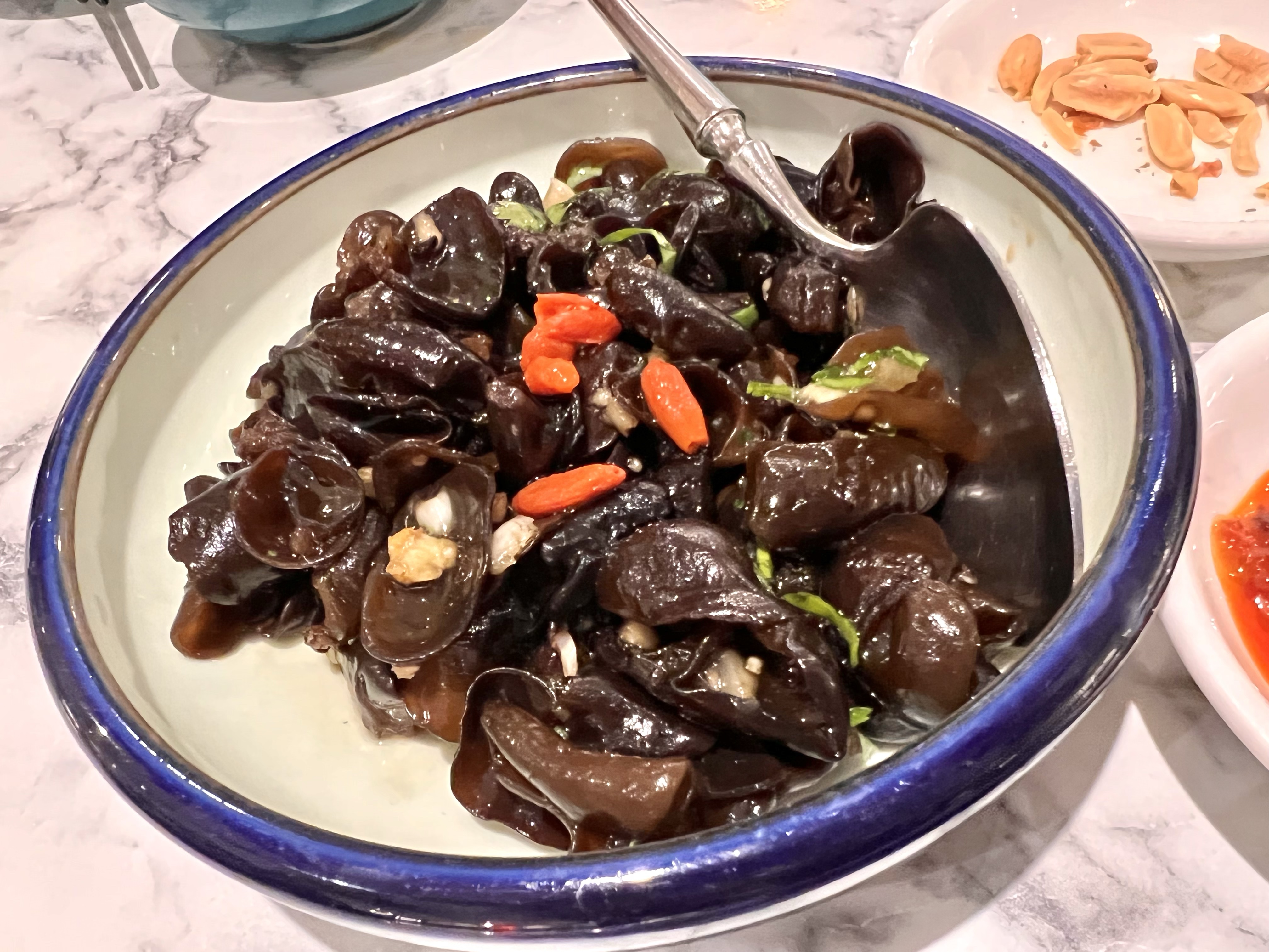 ordered the small $22 crayfish squidink beehoon which came with a free side dish..we picked minced chicken eggplants