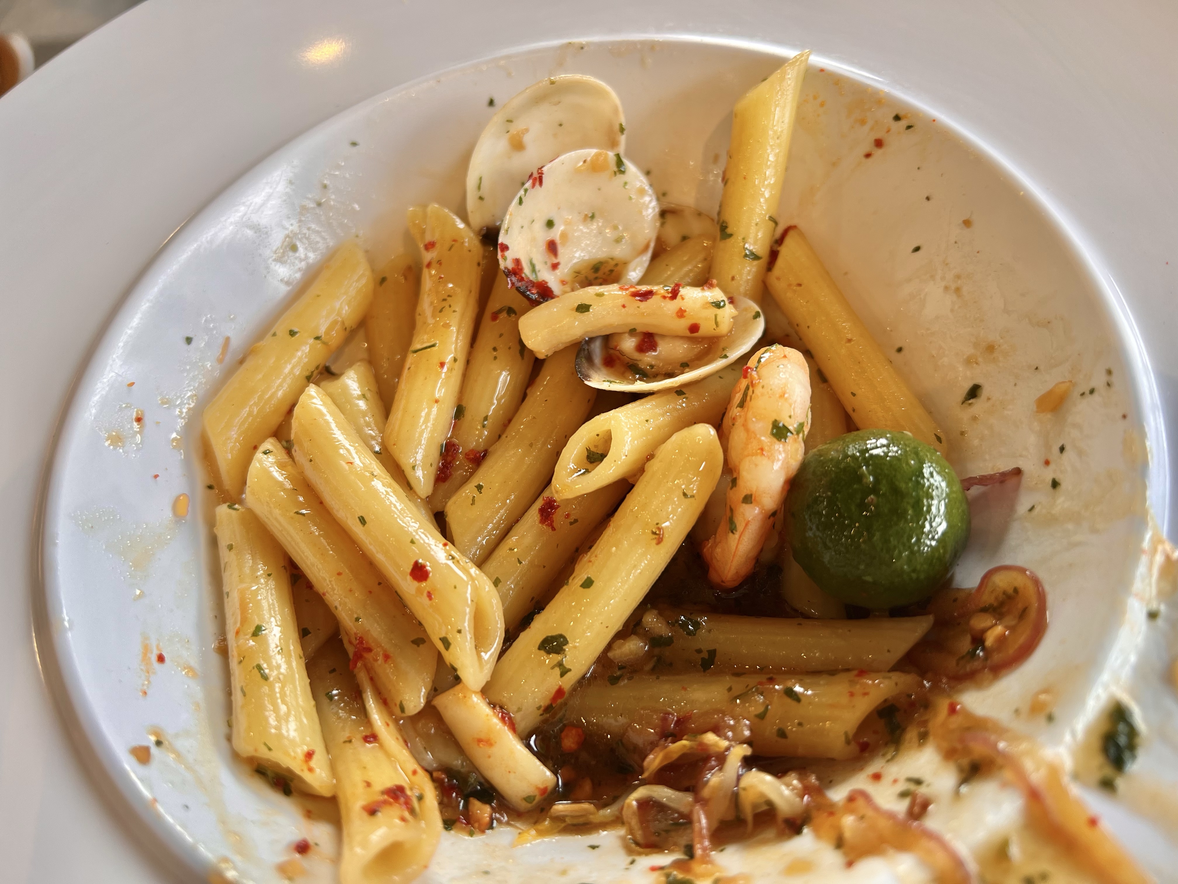 seafood penn pasta was ok tasty & al dente not much ingredients few clams & small prawns but really ordinary nothing much to talk about