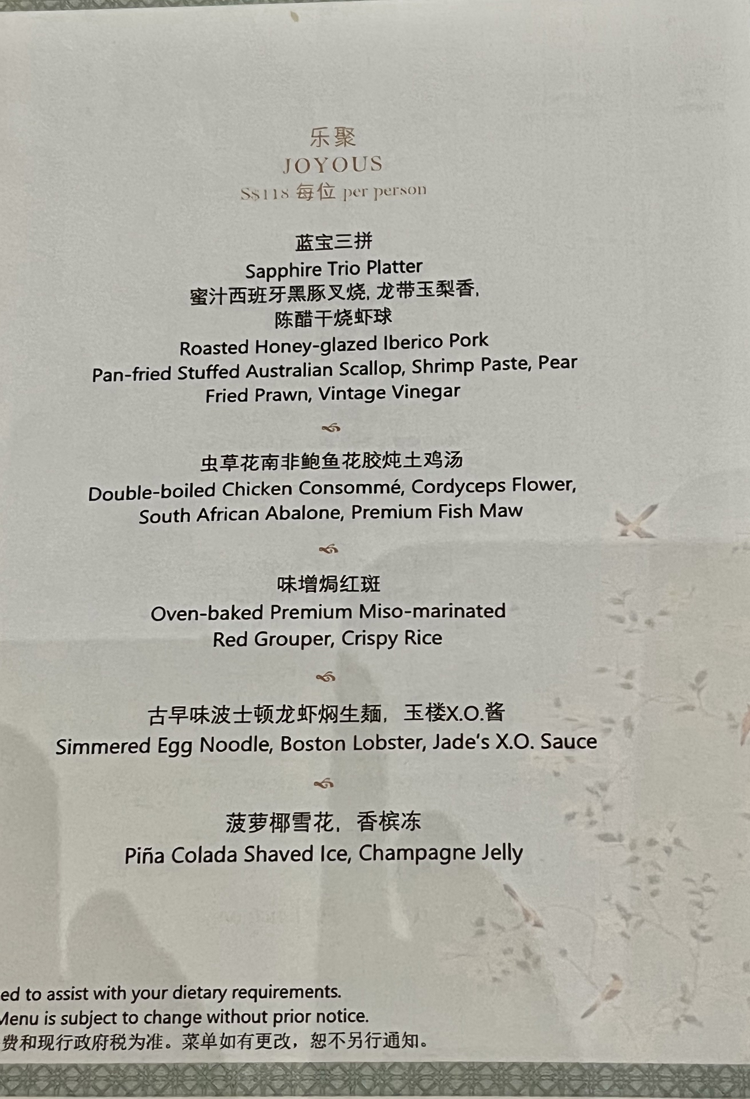 SM & SL joined for 4pax family dinner @ jade this evening on 28nov2021..