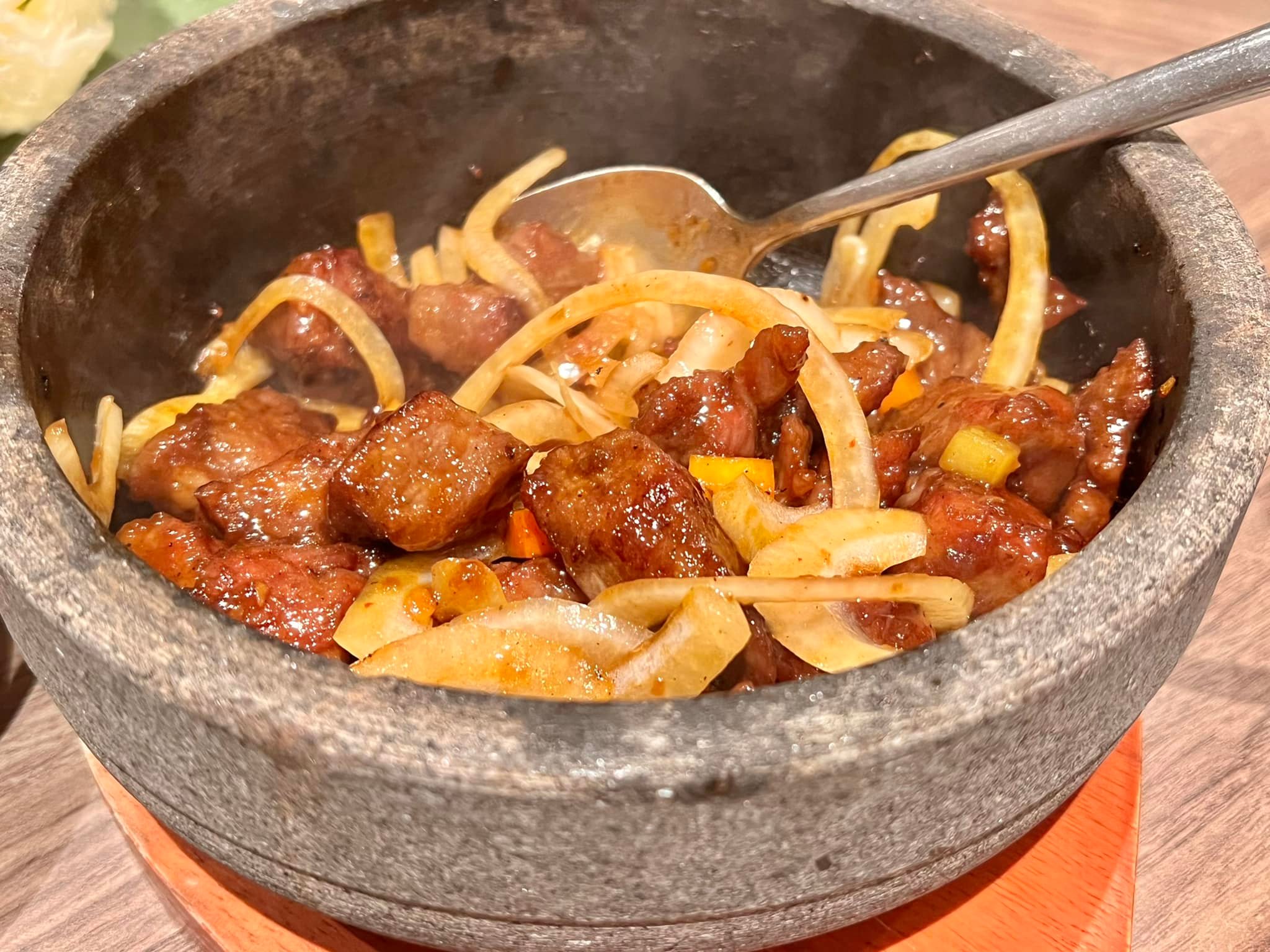 the Korean stone pot beef great caramelised onions & good taste but beef was totally tenderised super artificial
