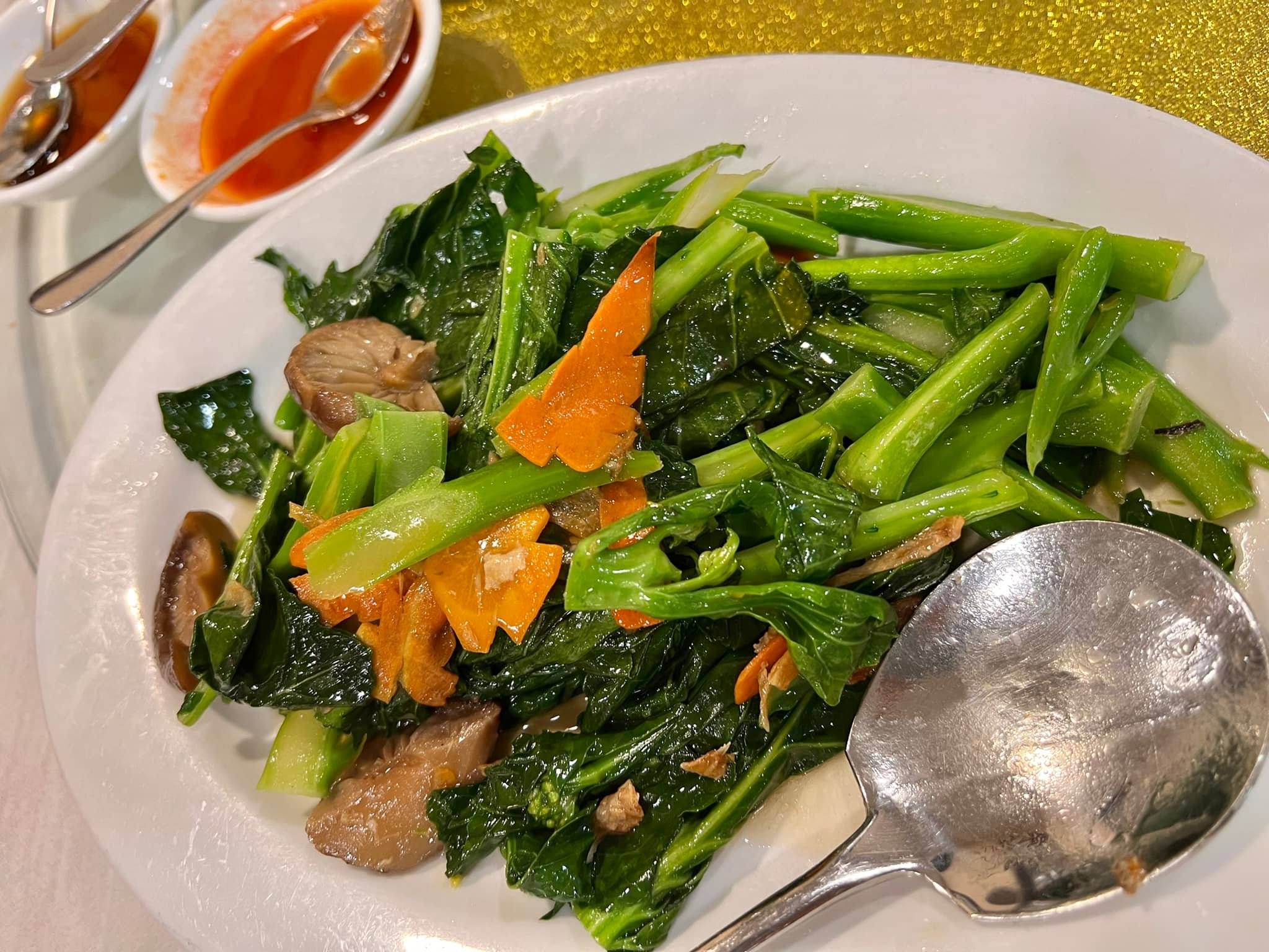 the kailan charged $20 (menu $18) and the fried kway teow $22 (menu $18)..