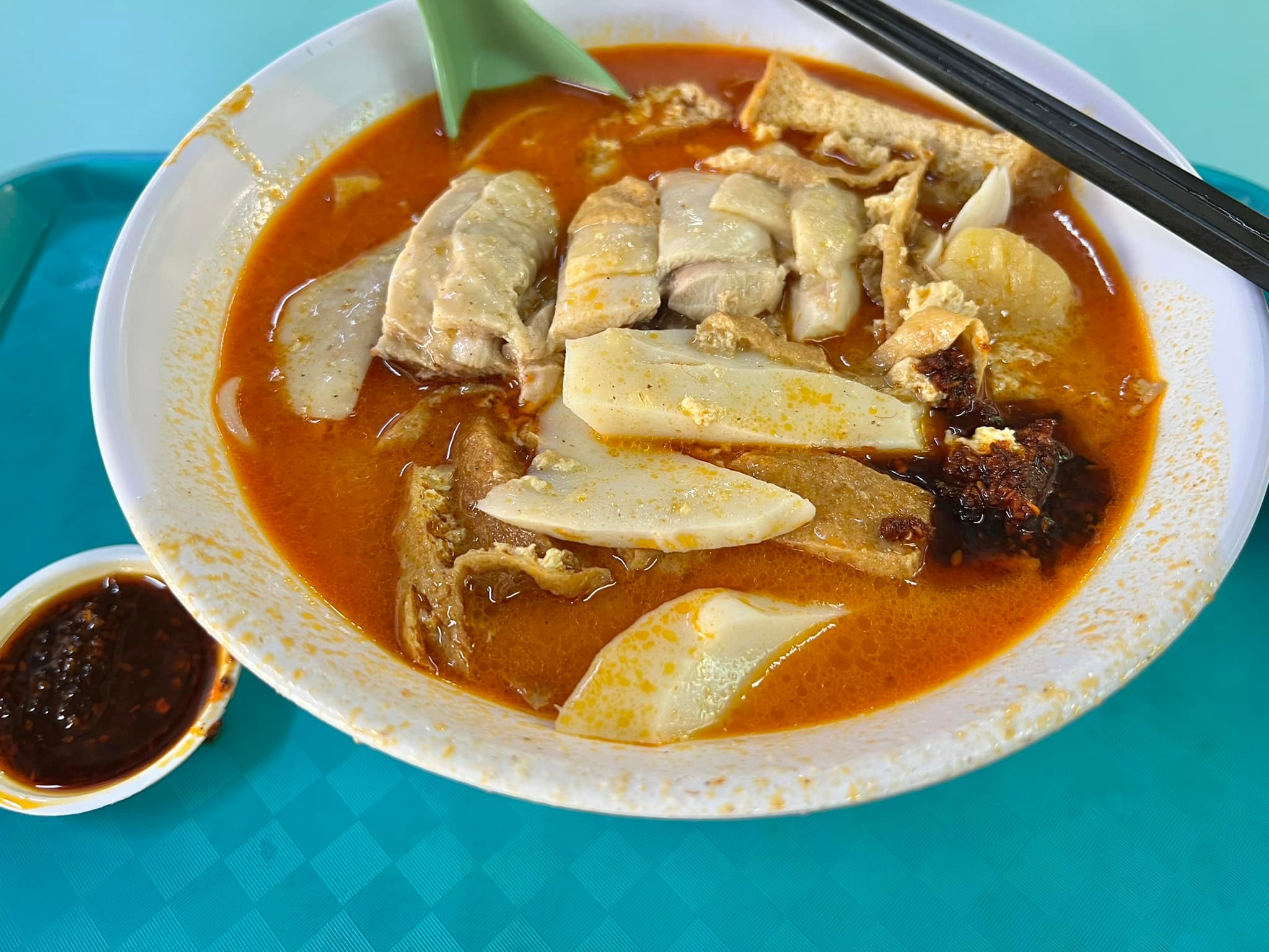 having S$7.50 curry chicken noodles alone @ ah heng on 17.5.2022.^^