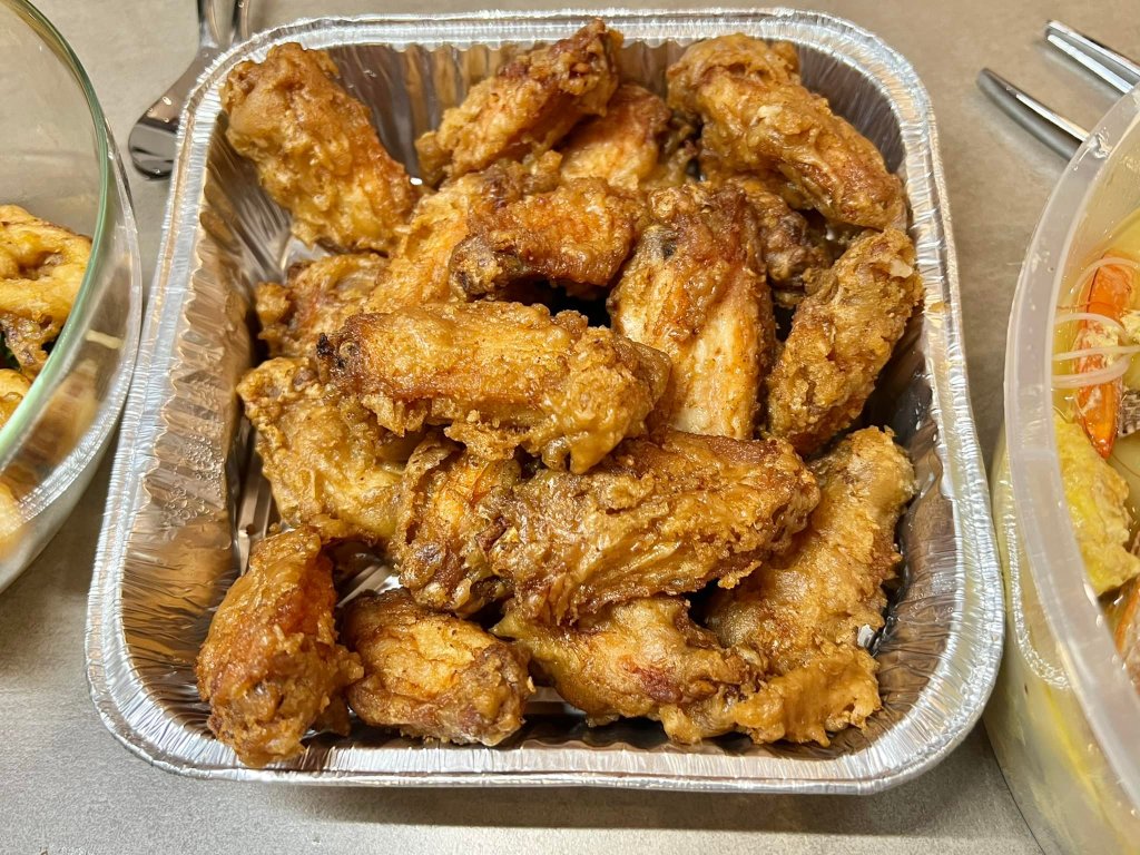 & ervin collected other dishes salted egg sotong, chicken wings, yangzhou fried rice from serangoon central zichar.