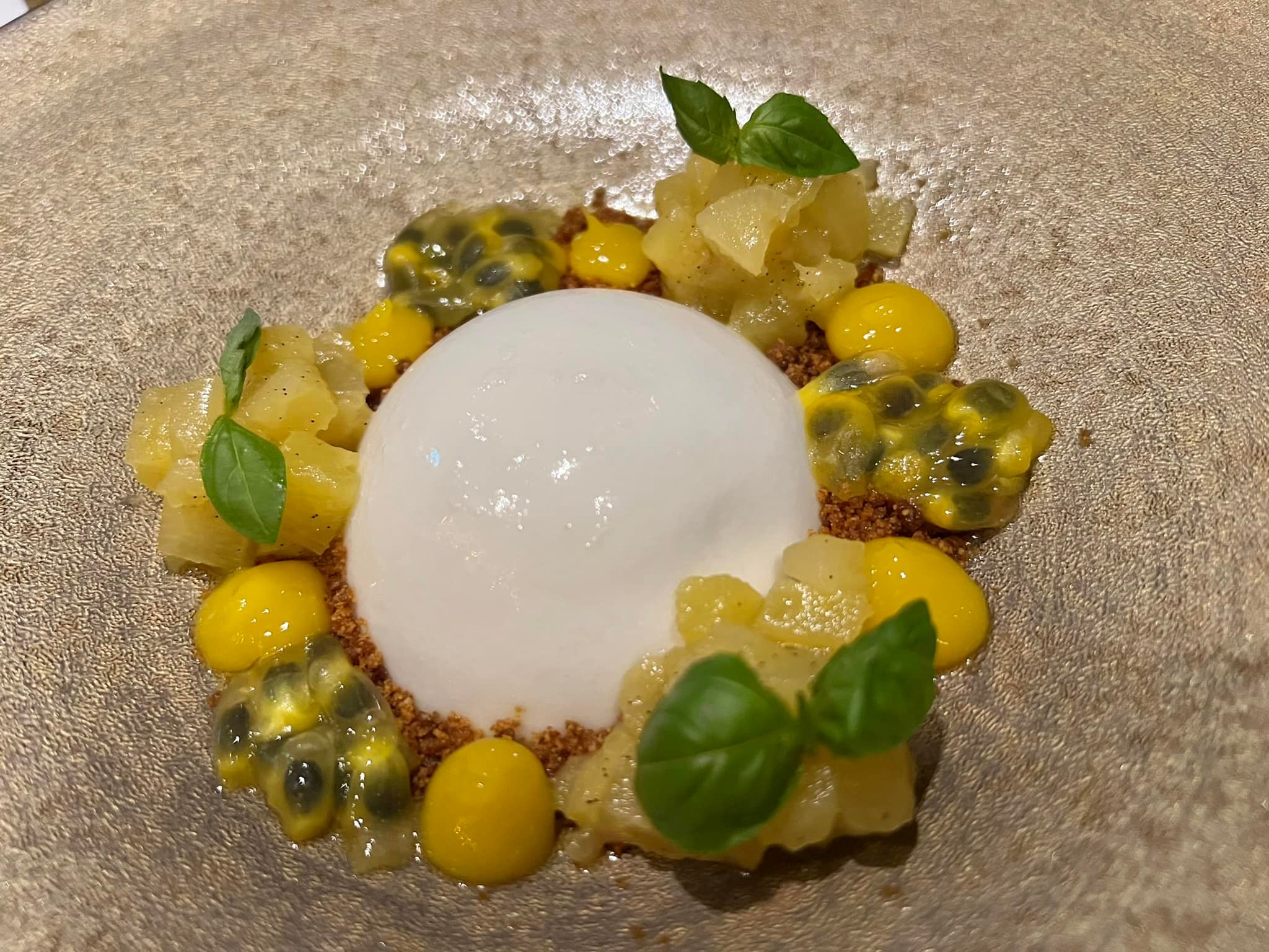 & so was the dessert…tiramisu the best I had anywhere including my own, and the coconut pannacotta with passion fruit and roasted pineapples superb too.
