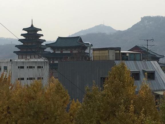 Day 1 – we walked by Gyeonghoe-ru Pavilion 庆会楼. bugaksan in the distance