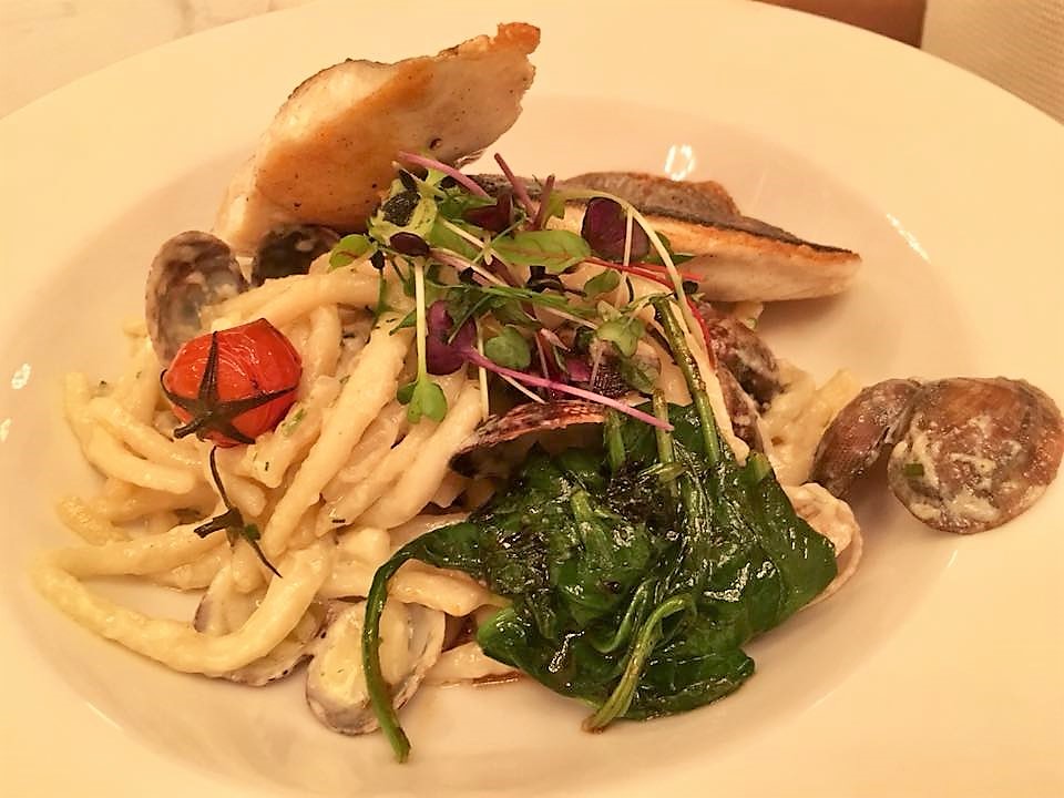 wife’s sea bream with clams istrian home made pasta, with spinach was delicious.