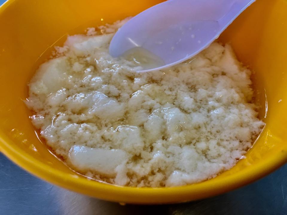 fresh tau huay, you are supposed to lift a whole slice & serve several slices in nice layers.