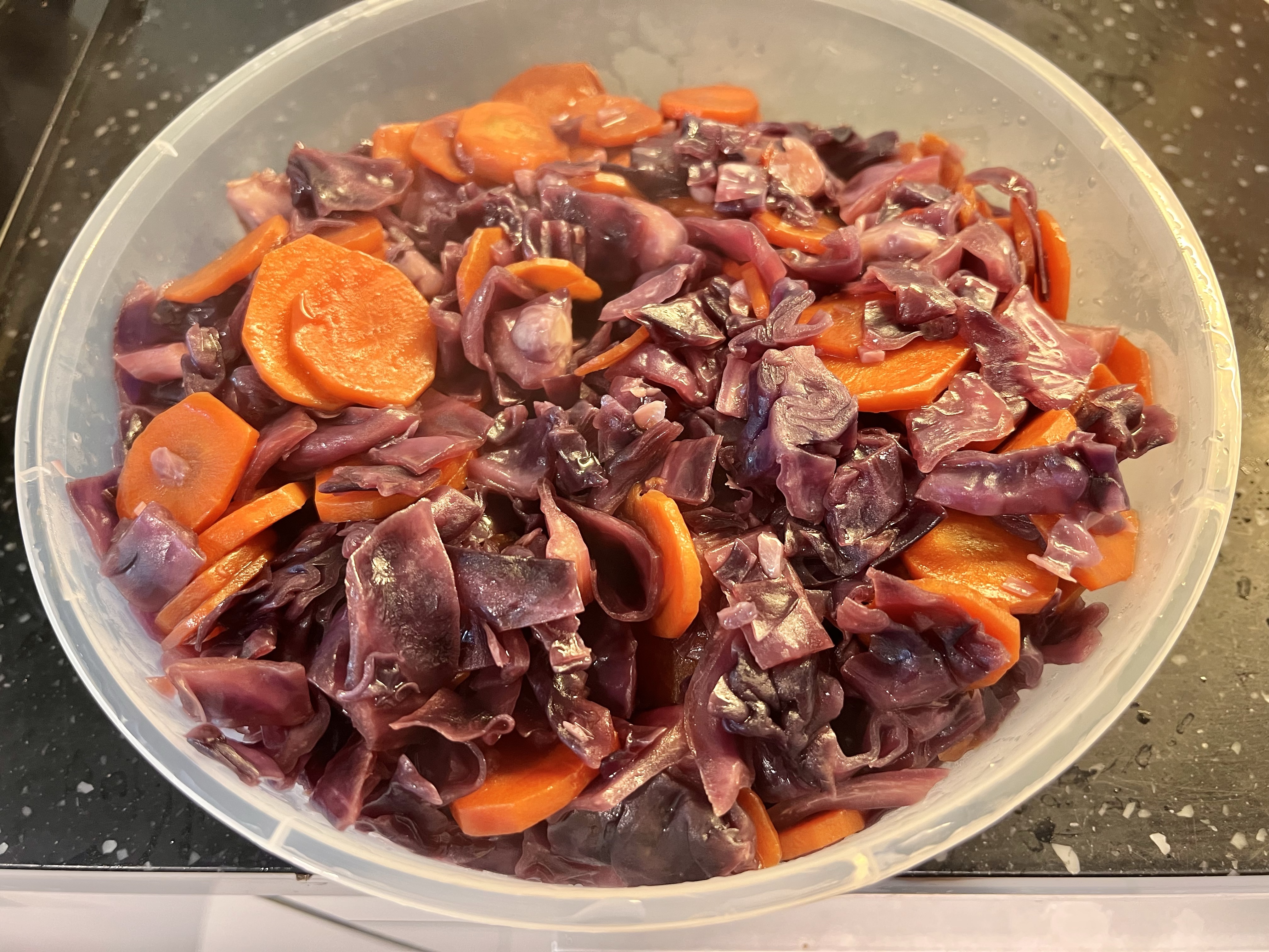 4 fried carrots and purple cabbage
