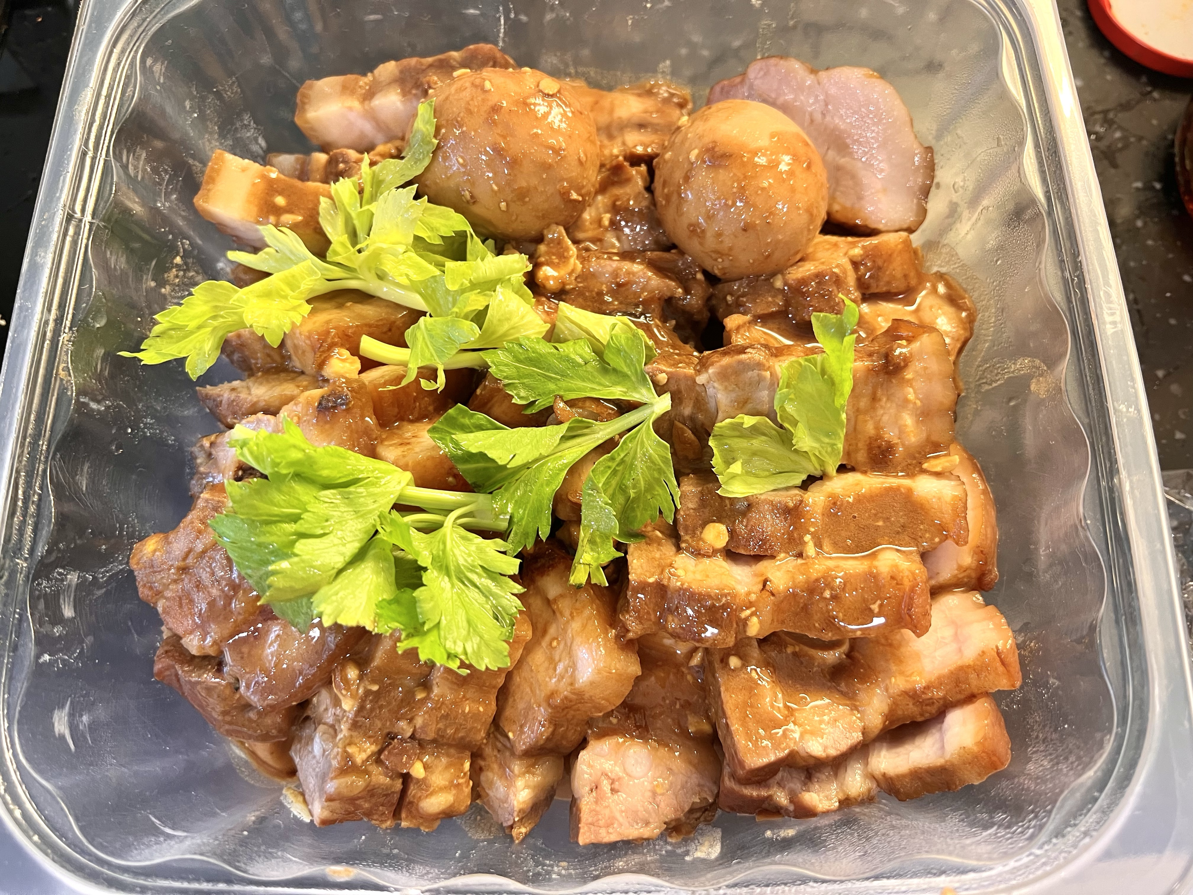 2 braised belly pork plus braised eggs