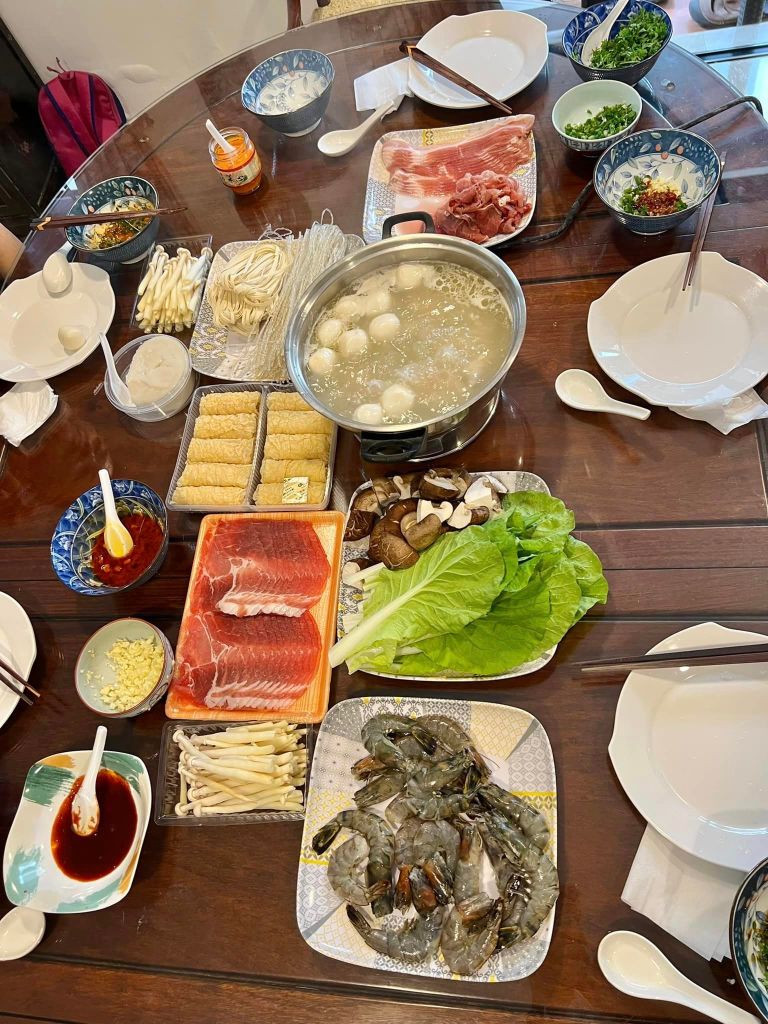 most important together with soup base are the dips & chilli..I have homemade chicken rice chilli..also made mala + san cha sauce, and also have Korean meat dip…plus lots of chopped scallions etc