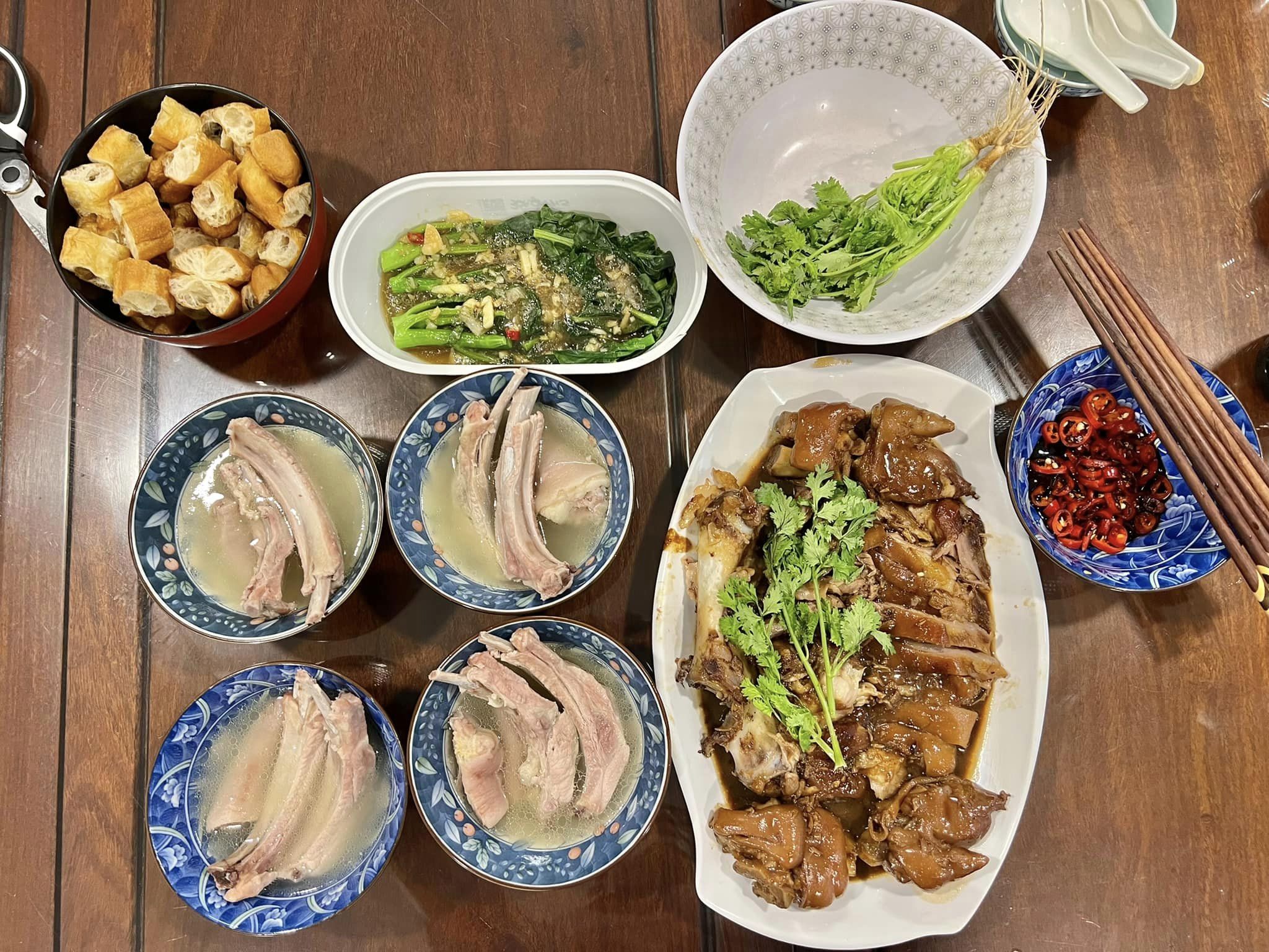 most important together with soup base are the dips & chilli..I have homemade chicken rice chilli..also made mala + san cha sauce, and also have Korean meat dip…plus lots of chopped scallions etc