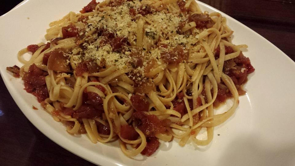 i heat up the bloody mary sauce & tossed the linguine, & then plated it as shown in Gordon Ramsay’s youtube video.