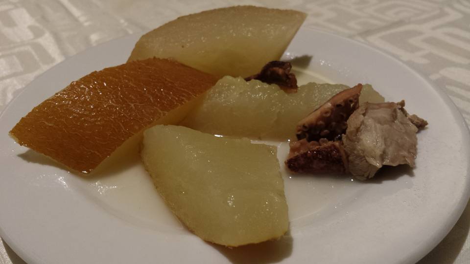 #5 my sister like lamb so i did a miso preparation for a cheap lamb shoulder chop. the lamb was marinated for 3 days in miso to infuse the flavours. it was then placed in the marinade bath in the oven at 90degC for 5hrs. this meat has lots of connective tissues & so very tough & not easy to make tender. 90degC happens to be the optimum temperature to convert collagen (the tough connective tissues) to tasty excellent texture gelatine. this time though i forgot to remove from oven & it dried out a bit c/w a quite perfect preparation for a 11pax sit-down dinner i had for RI friends recently on 5.5.2014.