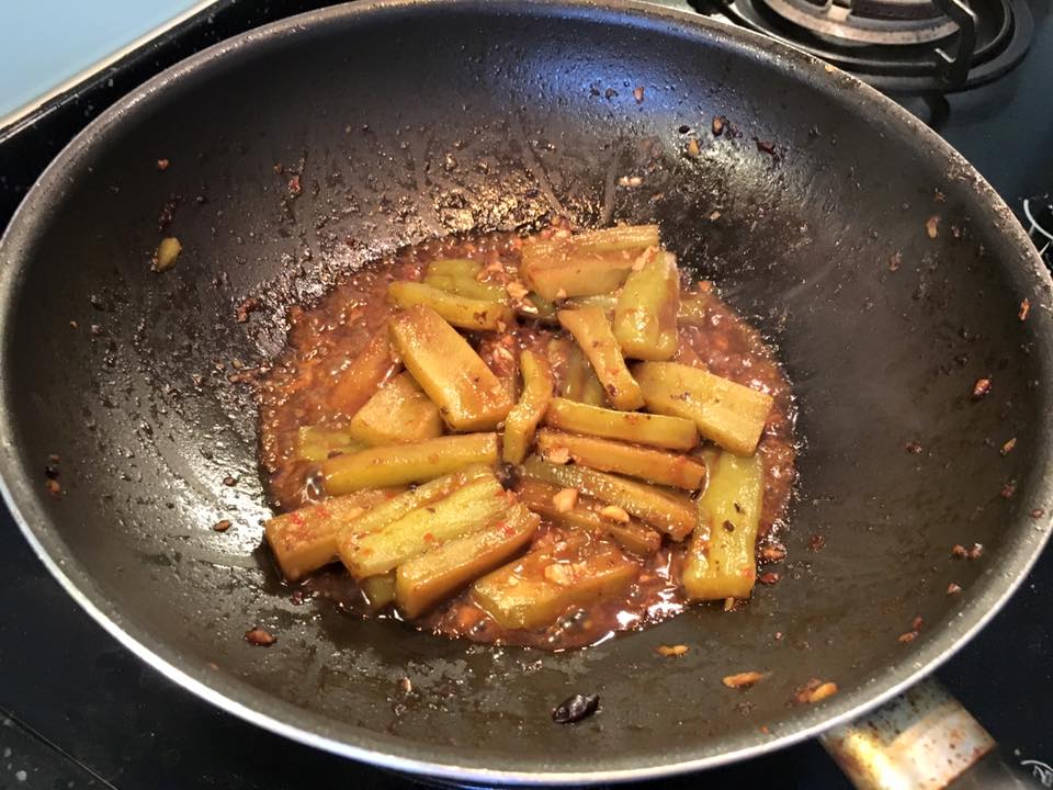 - off fire, add 50ml white wine & 2/3 cup stock & reduce the pasta sauce, add seasalt to taste