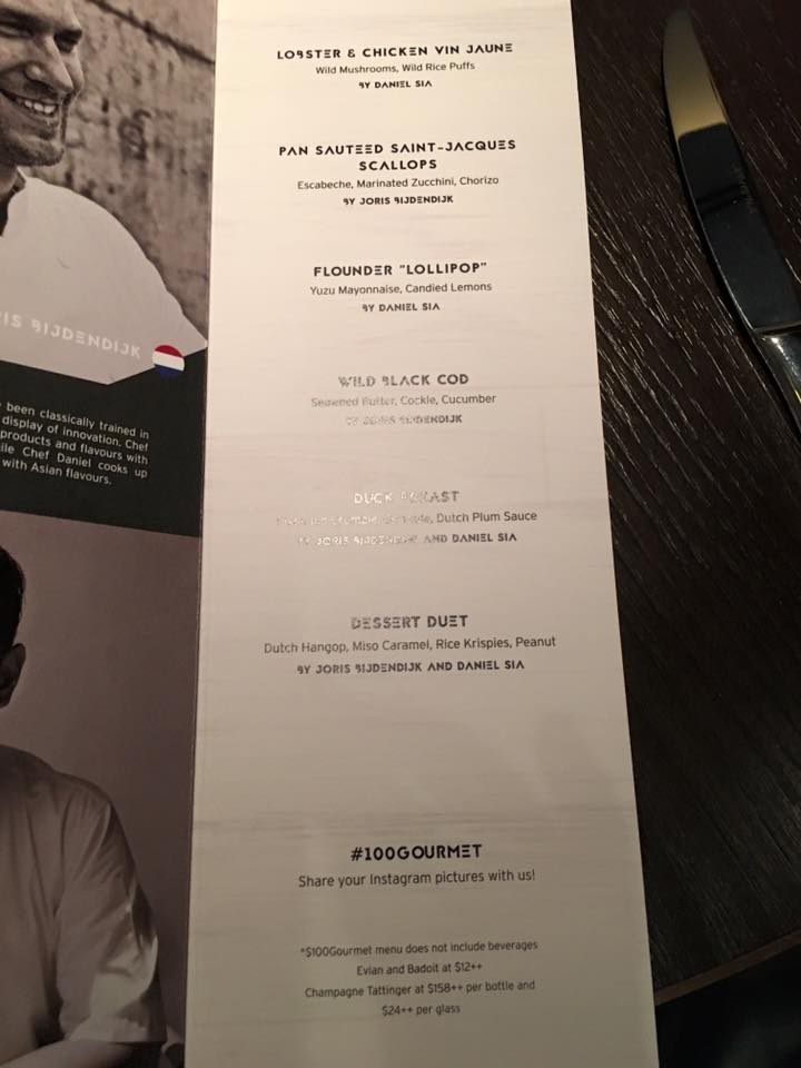 this was a 100gourmet dinner citibank promotion where overseas award winning chefs paired with 2 top singapore restaurants every month to deliver a 6-course dinner at S$100++