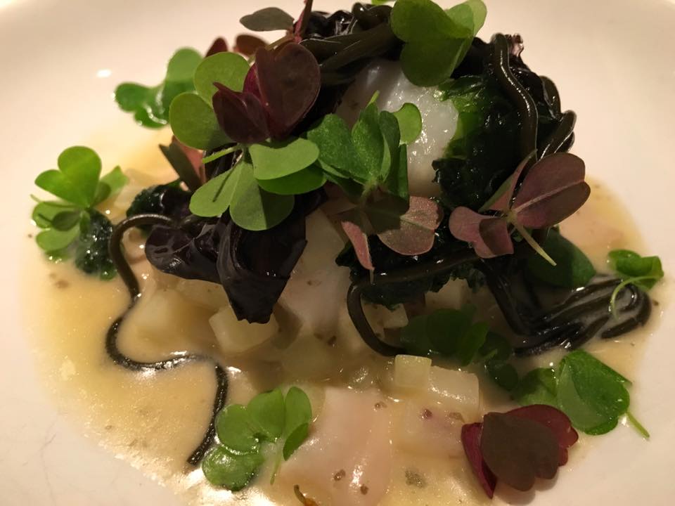 for us, the seaweed butter did give a distinctive salty taste but nothing overpowering & in fact flavoured the dish rather well, & the shellfish bits (cockles??) added great bite to a delicious sauce. the cod tasted a bit firmer, like a monkfish texture, anyway it was good.