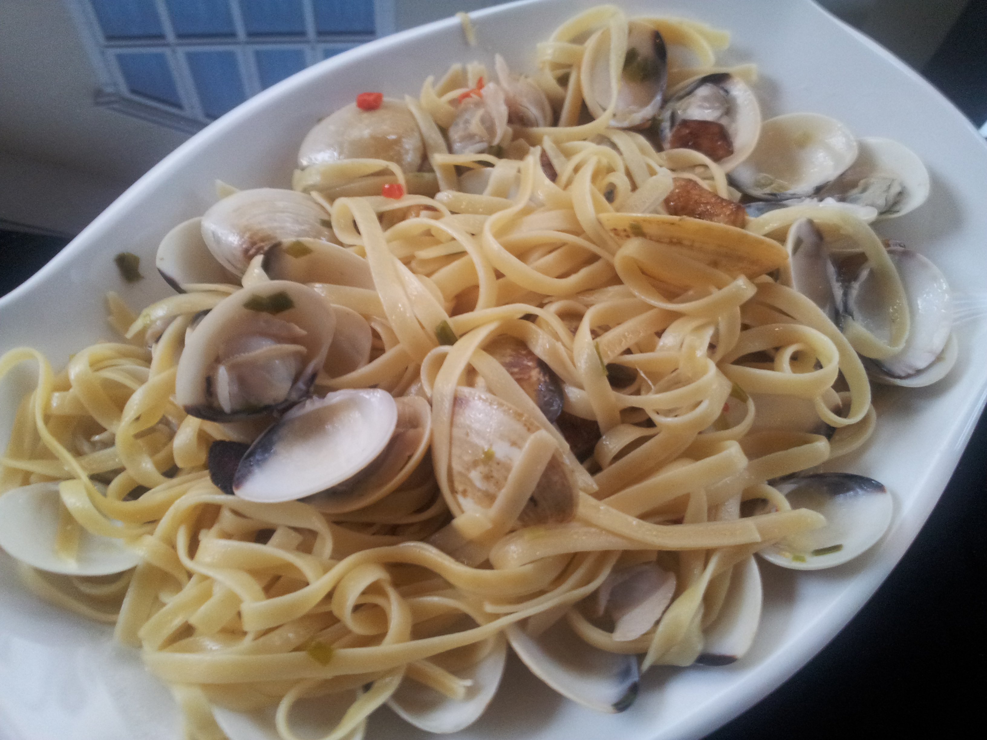 made a simple pasta dish = prawn capellini in white wine sauce for myself on 1.6.2018. ^^