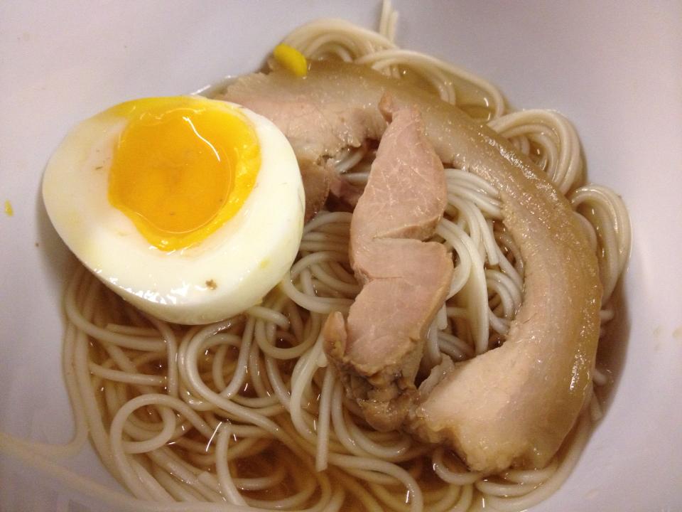 the Jap chashu was also done beforehand. So was the perfect runny yoke egg – direct from fridge into boiling water & simmered for exactly 6mins. 🙂 instead of heavy ramen, I used small pinch of thin Japanese light noodles that was cooked just al dante & dropped into ice water to stop after-cooking to ensure the “qq” effect. 🙂