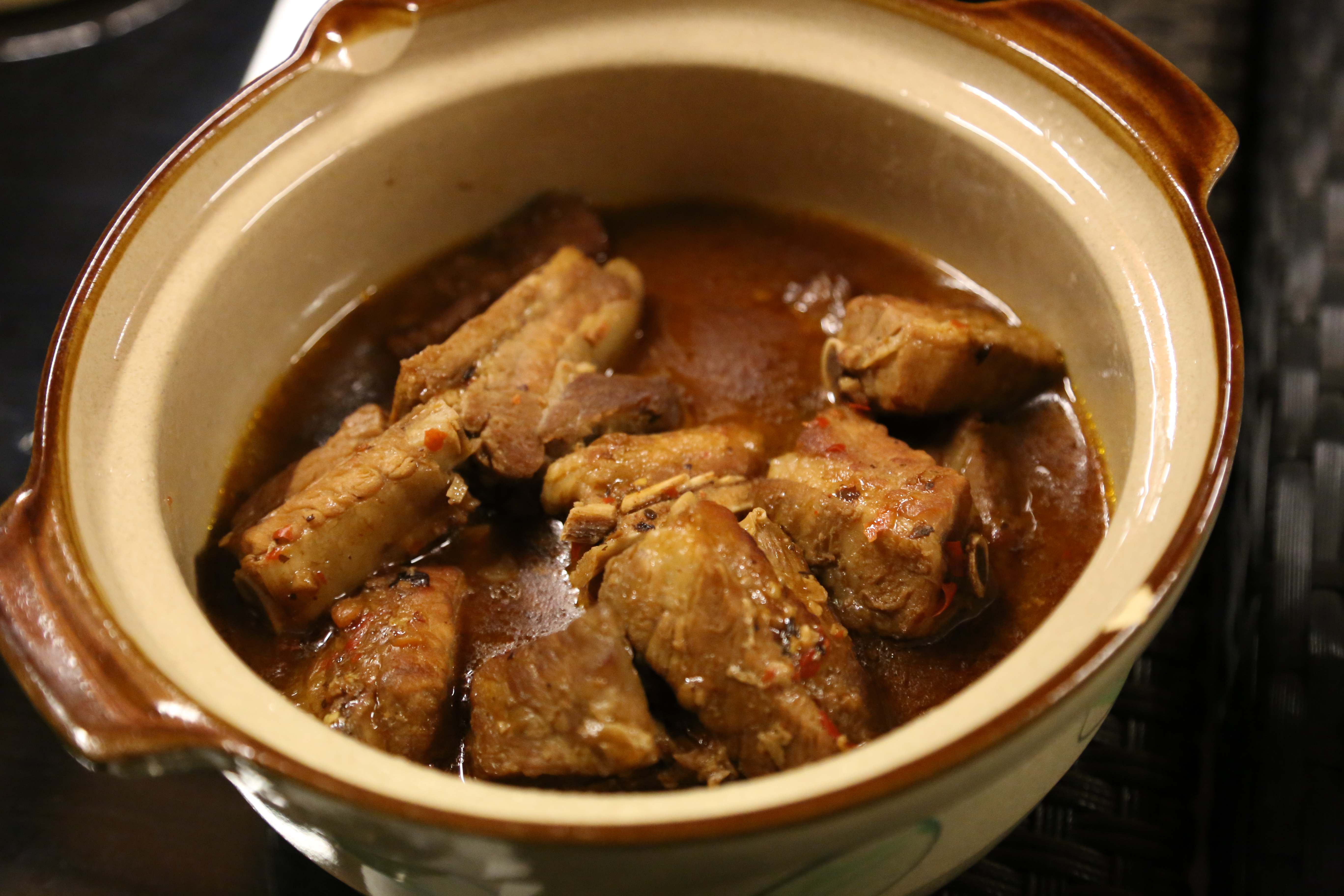 we also had a very good spicy bean sauce pork prime ribs dish made by my domestic helper. she had mostly perfected the wonderful dish. 🙂