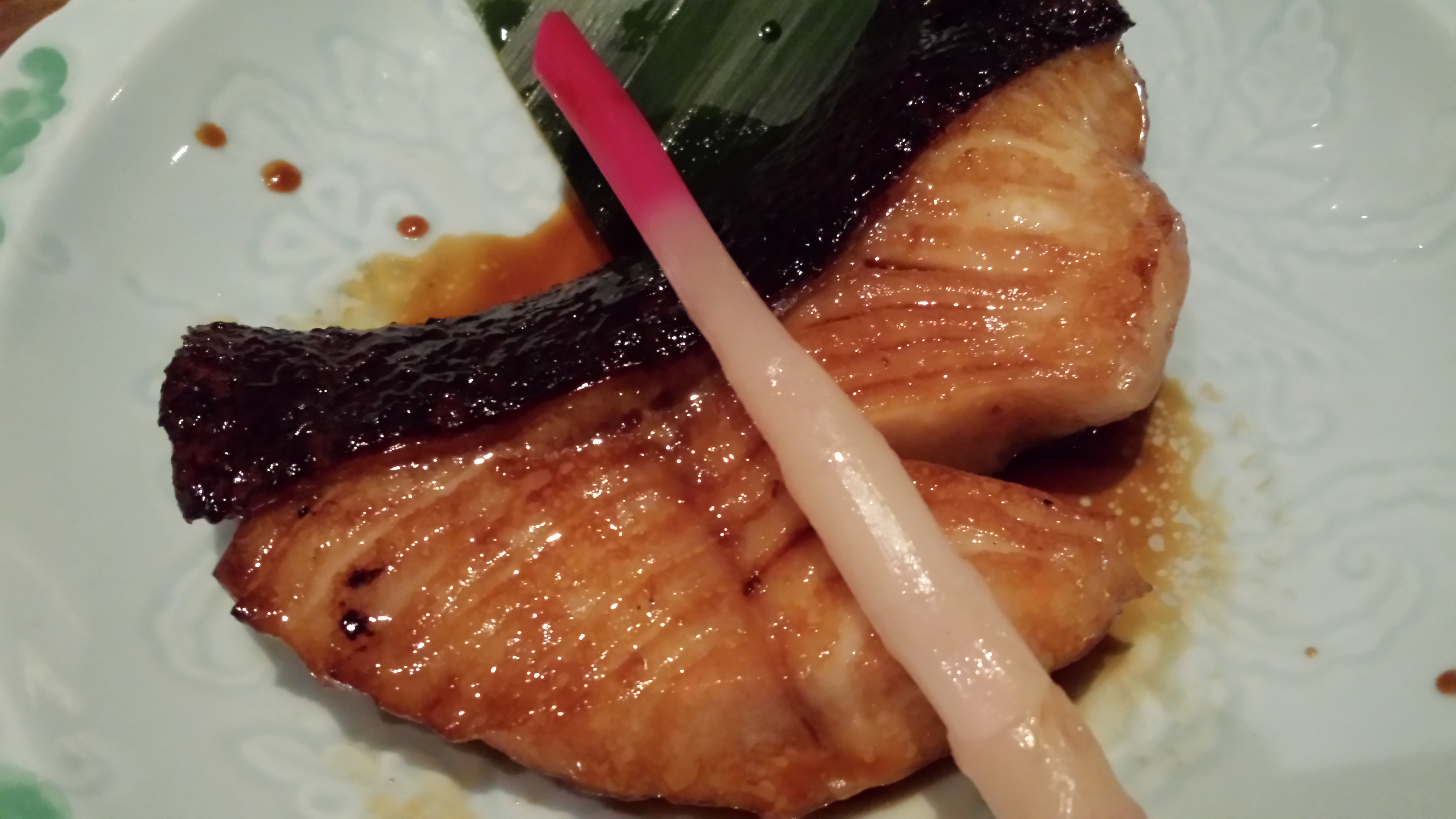 grilling gives a slight charred skin & wonderful grilled flavours, the sauce dries up a bit so more intense, and the more fatty parts of the flesh near the belly combines well with miso & light soy sauce, are not chunky in texture like the steak or fillet parts, so perfect la!